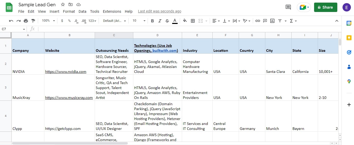 Sample Lead Gen