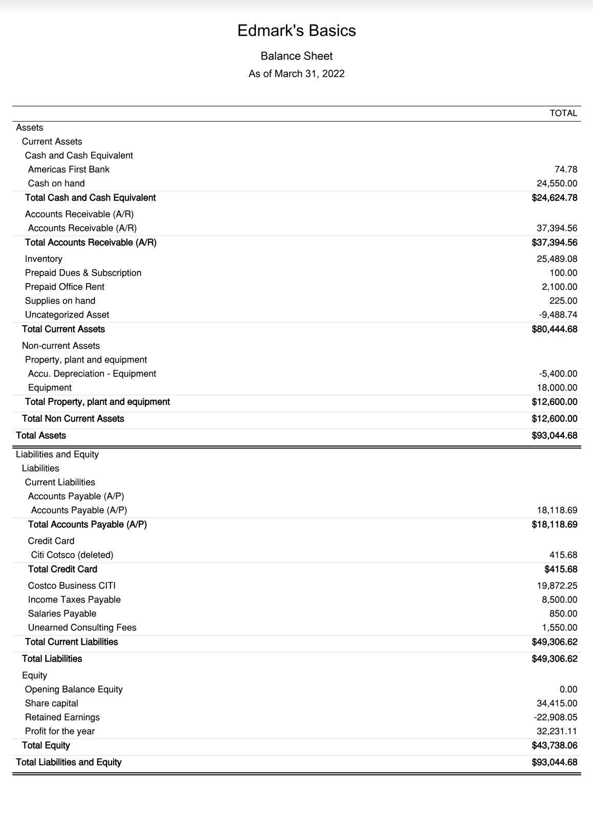 Balance Sheet Report