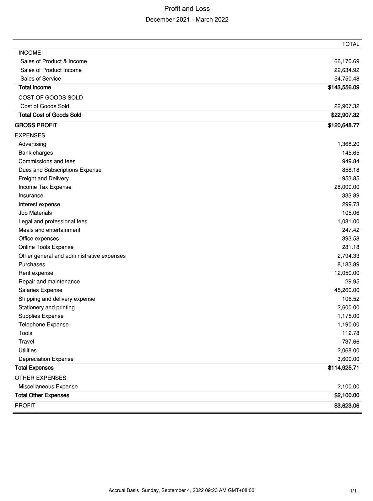 Profit and Loss Report