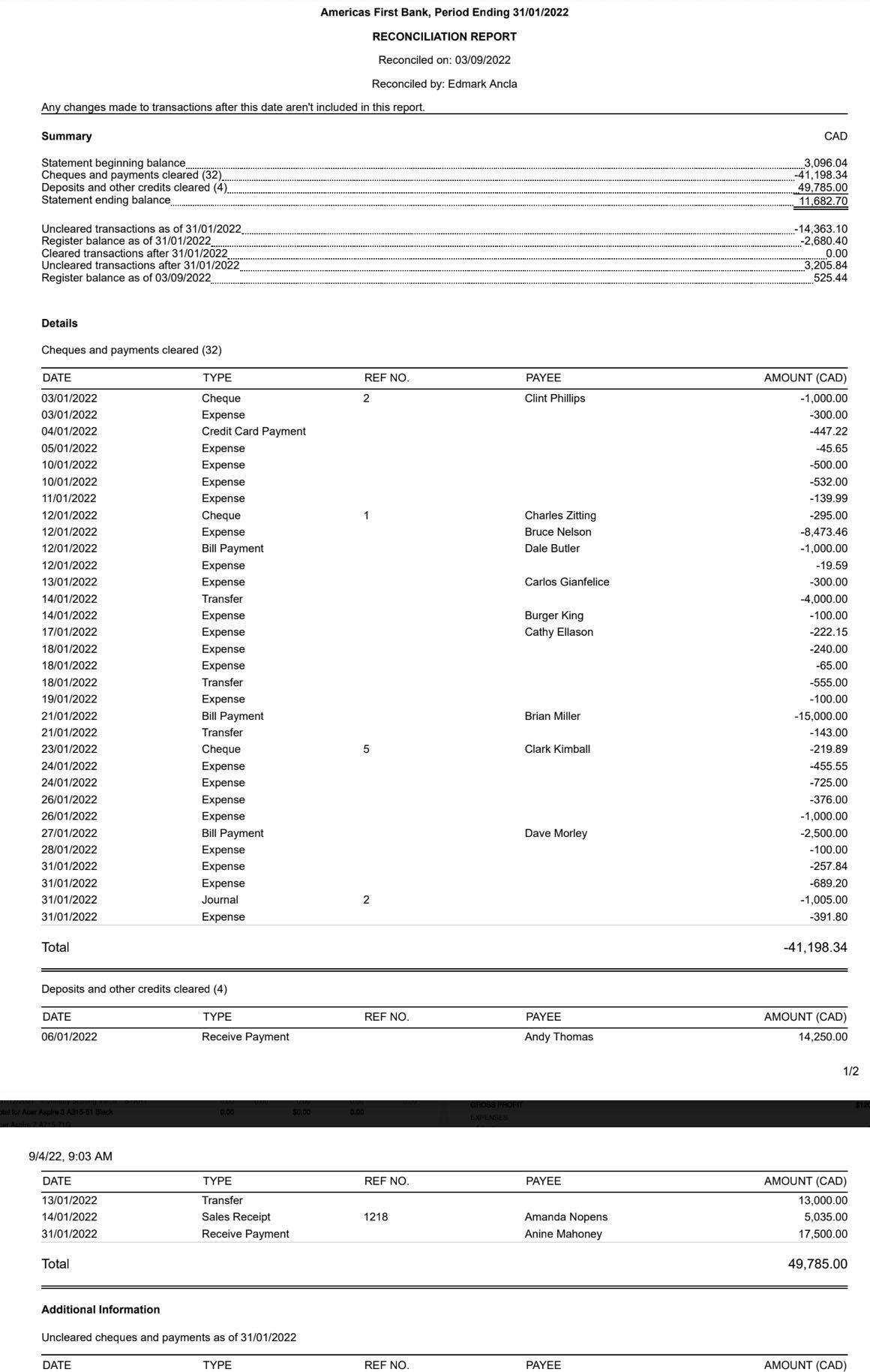 Credit Card Bank Reconciliation Report