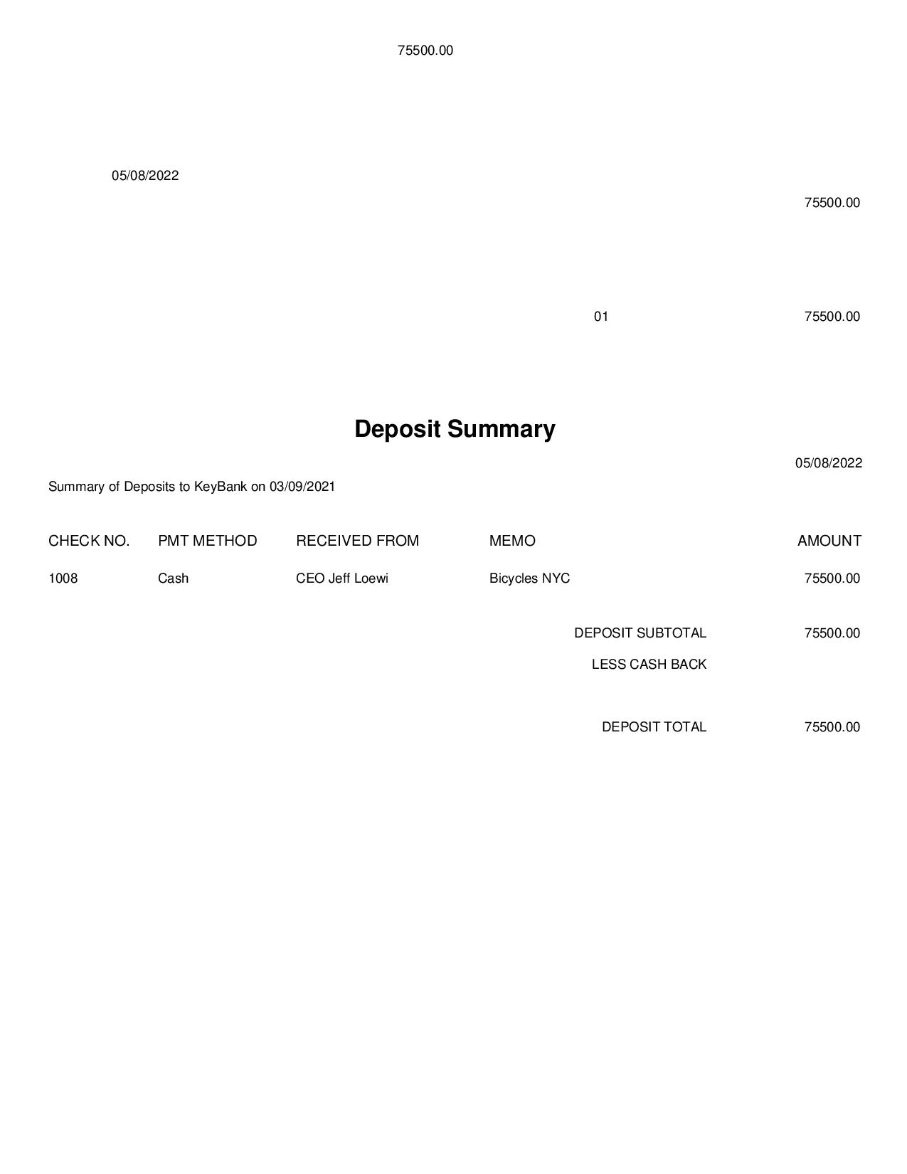 Qbooks Deposit Summary Example