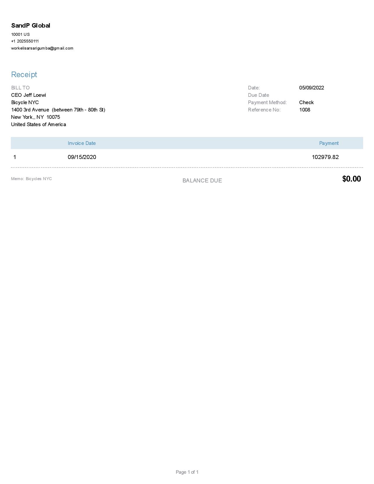 Qbooks Receive Payment Sample