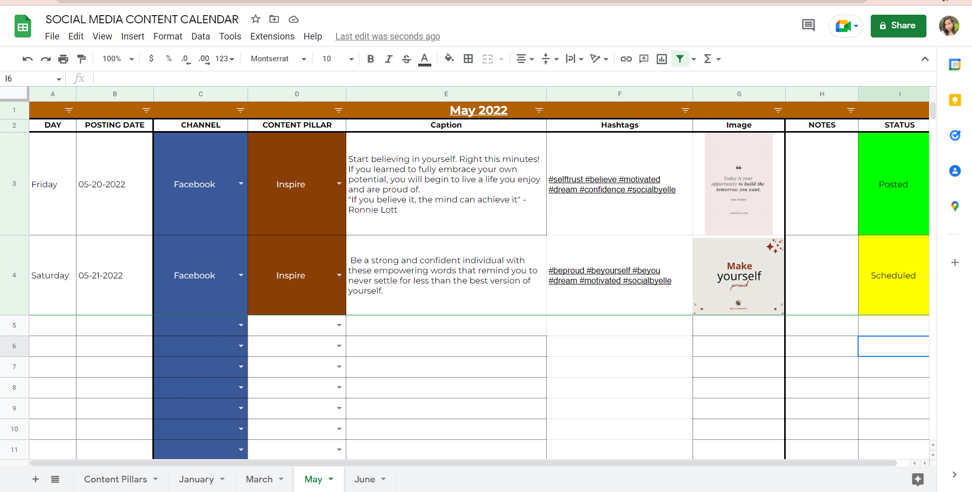 Calendar Content for May 2022