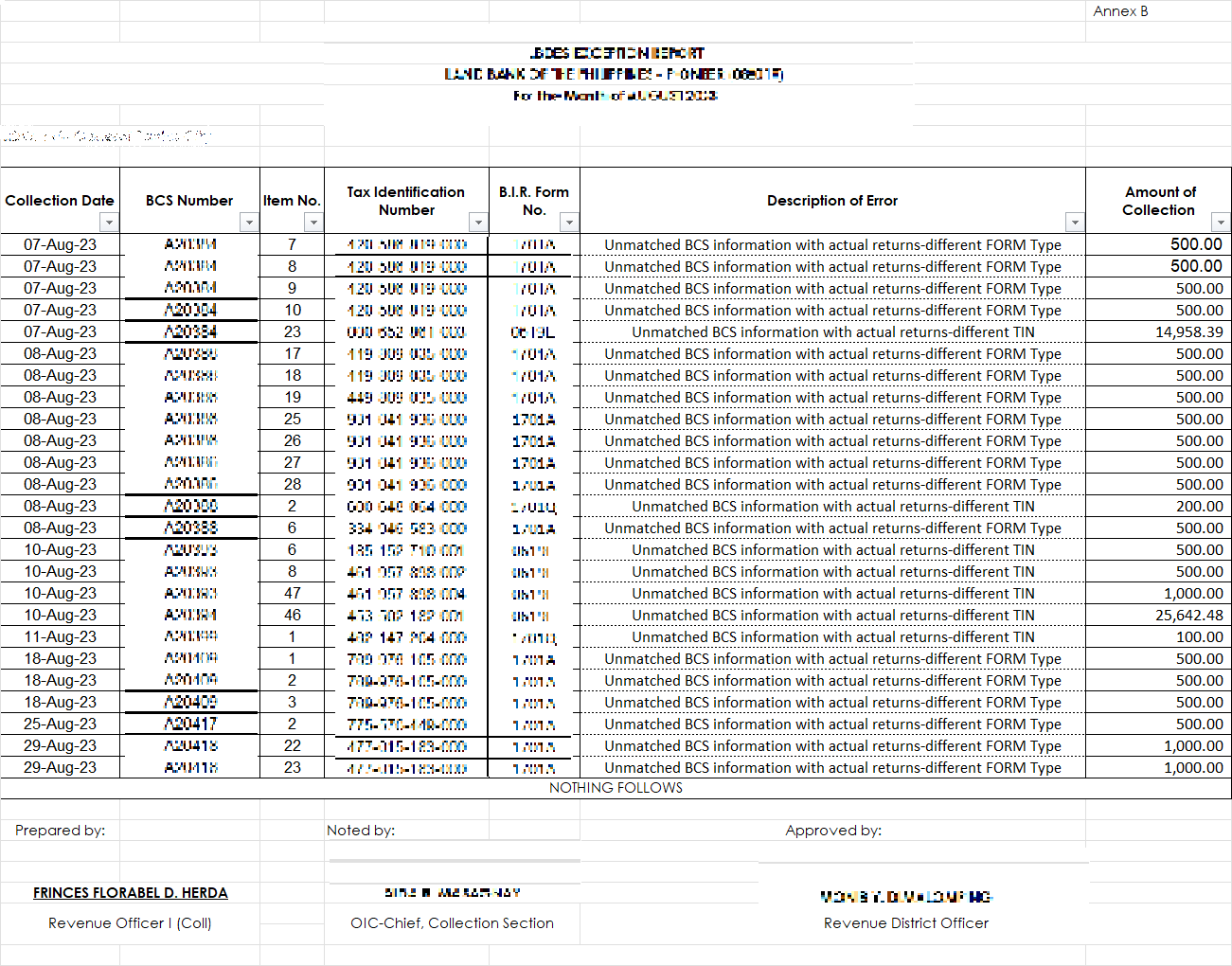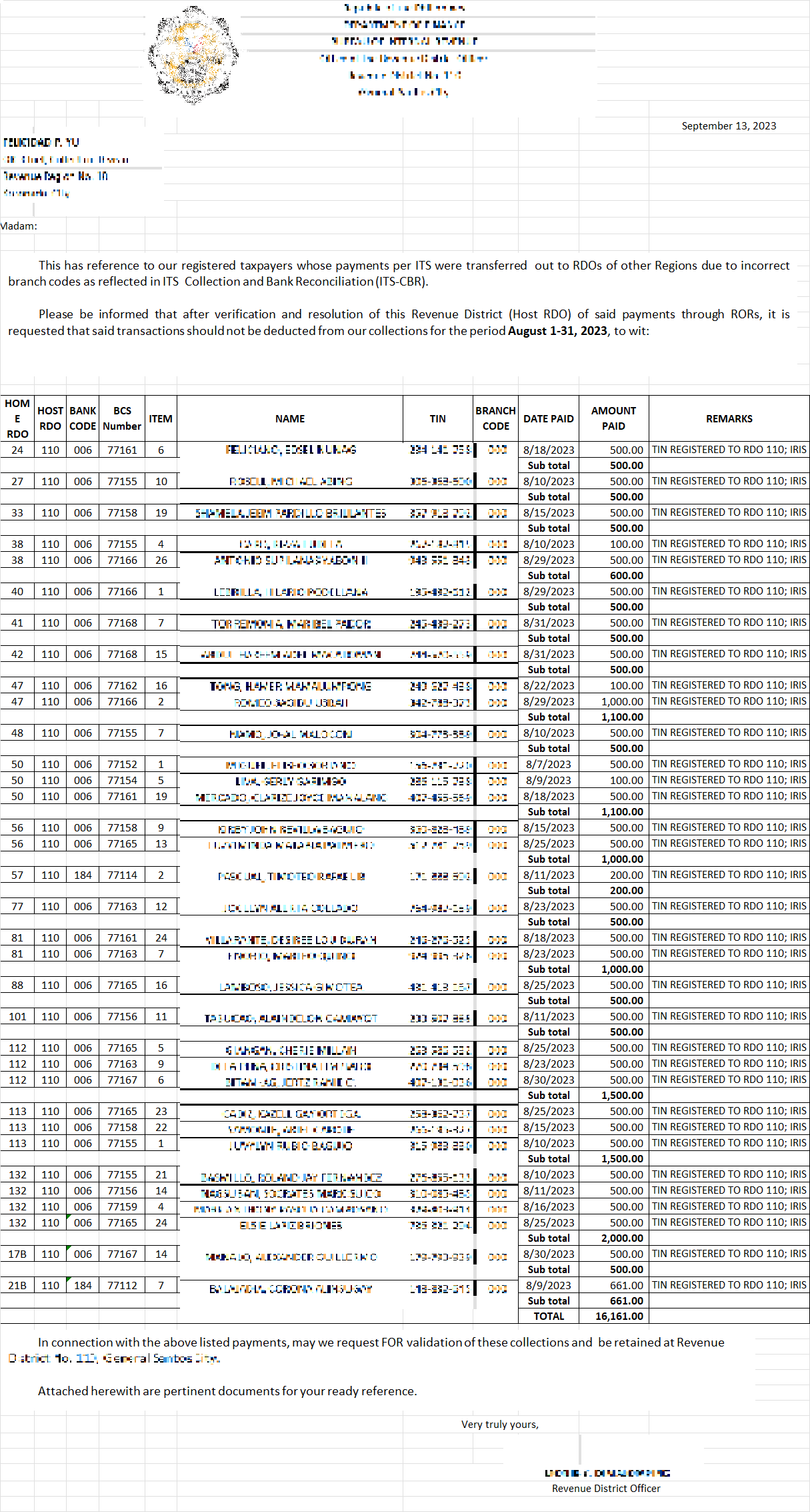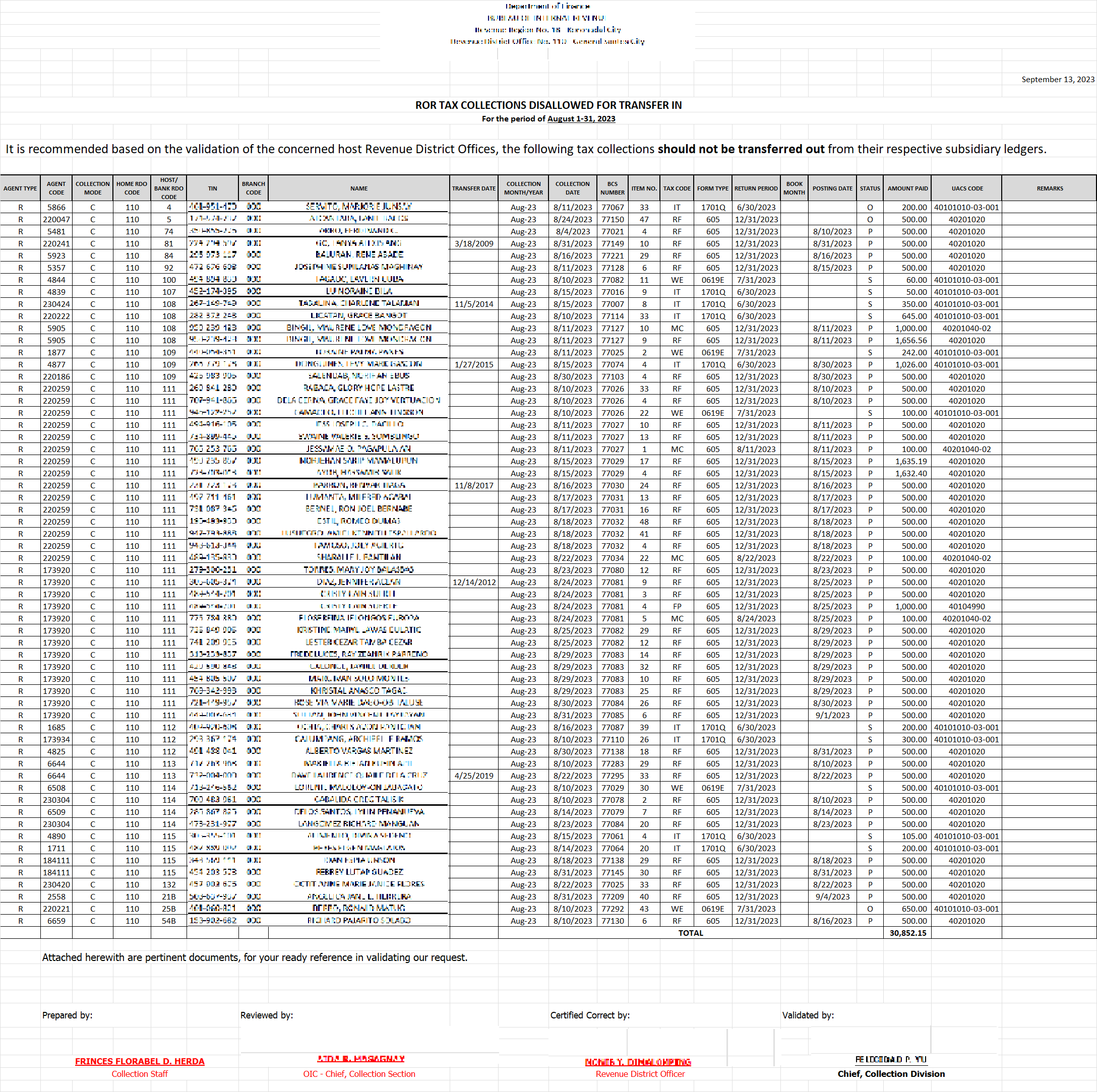Based on the data given to me by the National Data Center, I have to verify each transaction in the system to identify the nature of the transaction, where it is paid, and which district the taxpayer is registered. After which I have to make different reports whether the payments made are to be transferred in to our district, or to be transferred out to other districts.