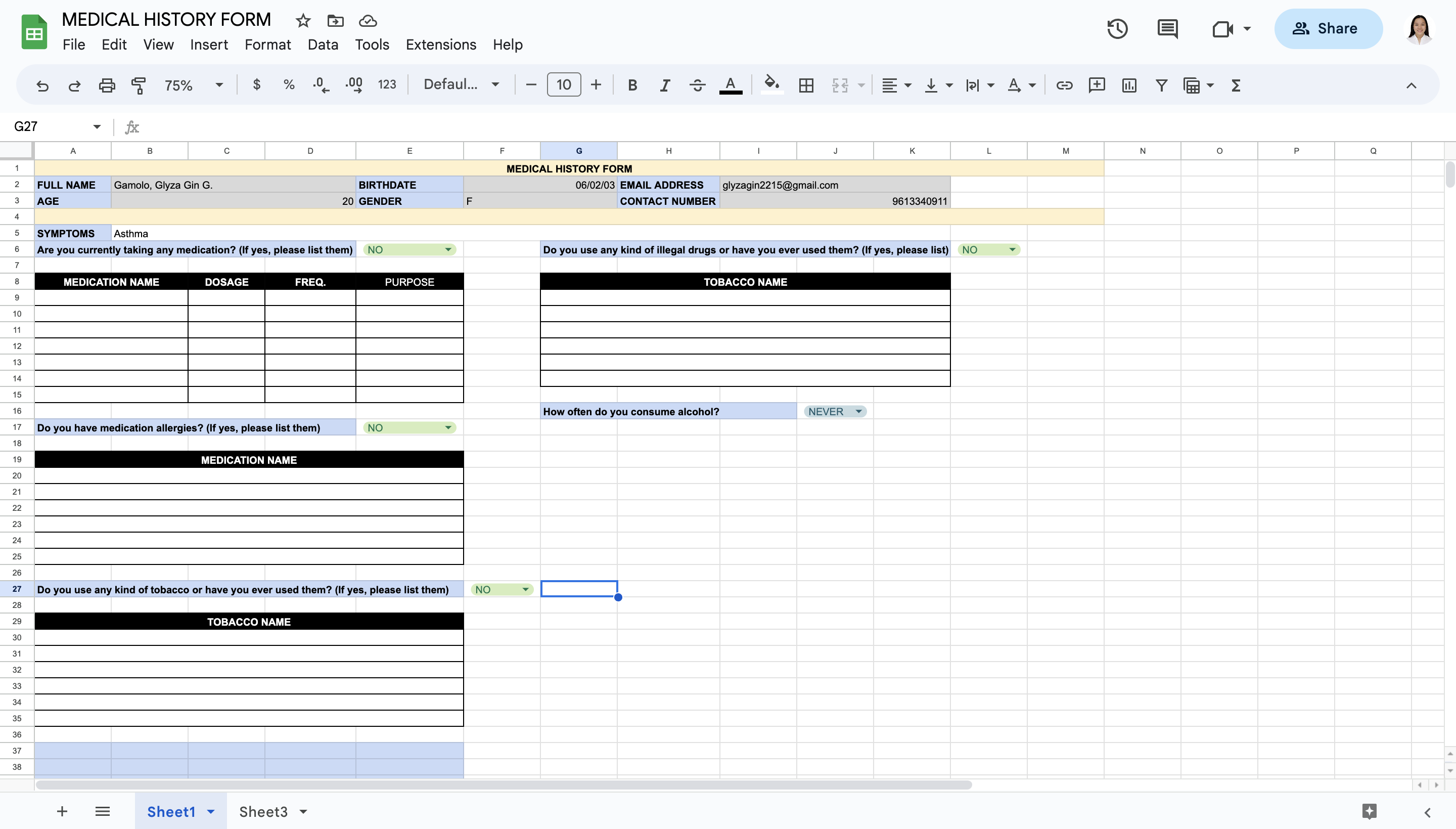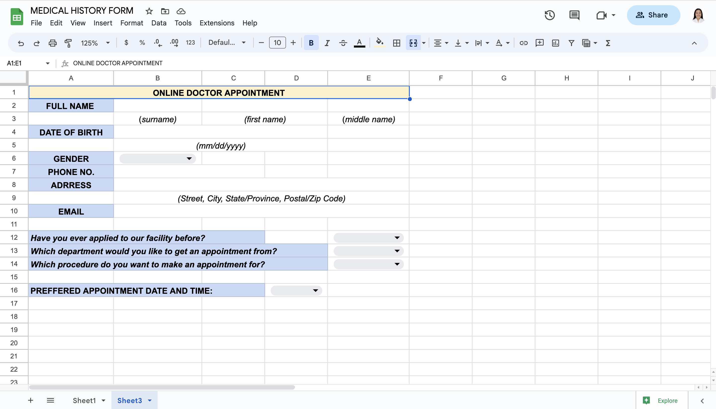 MEDICAL HISTORY FORM