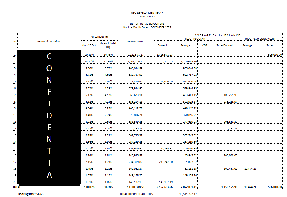 Sample Wok on Data Entry : Top Depositor for the Month