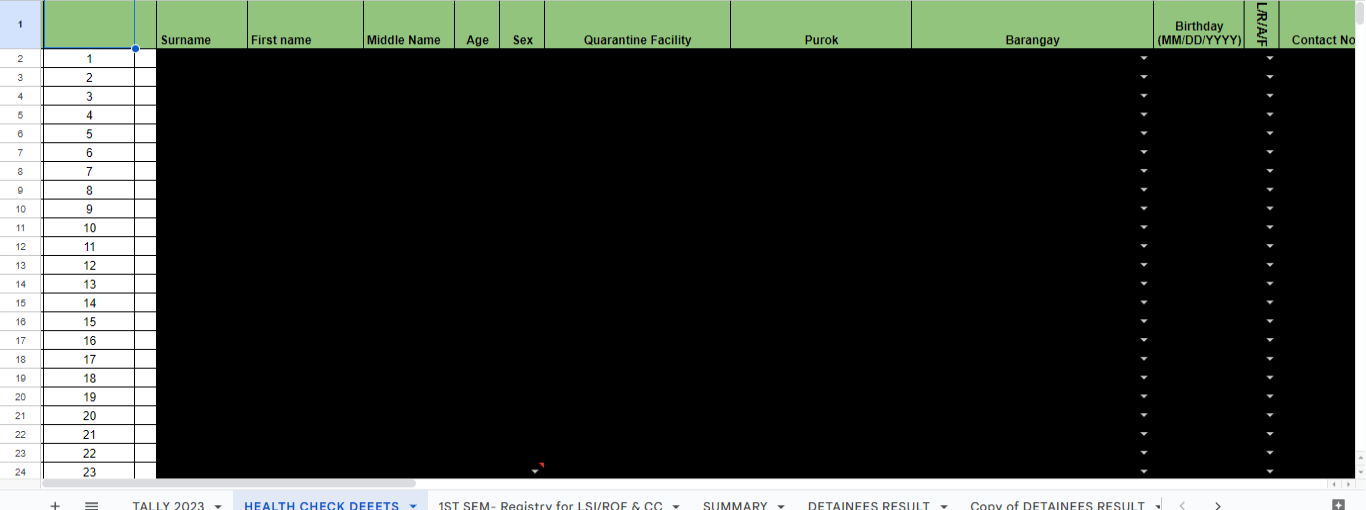This data was edited everyday and I'm using spreadsheet. To sum up the weekly tasks and other details of the client. This ensures the confidentiality between the company and the client.