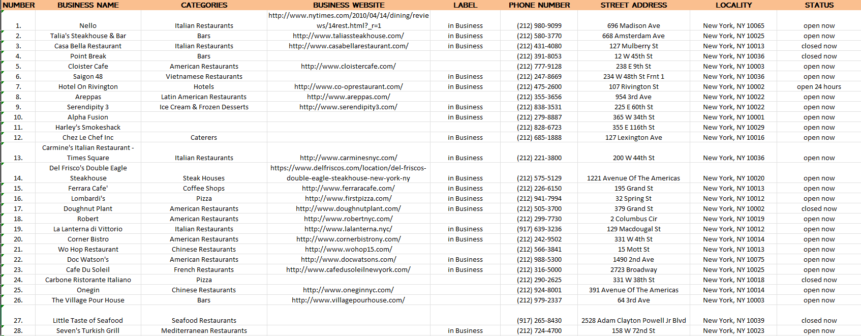 Data Collection of all the restaurants in New York.