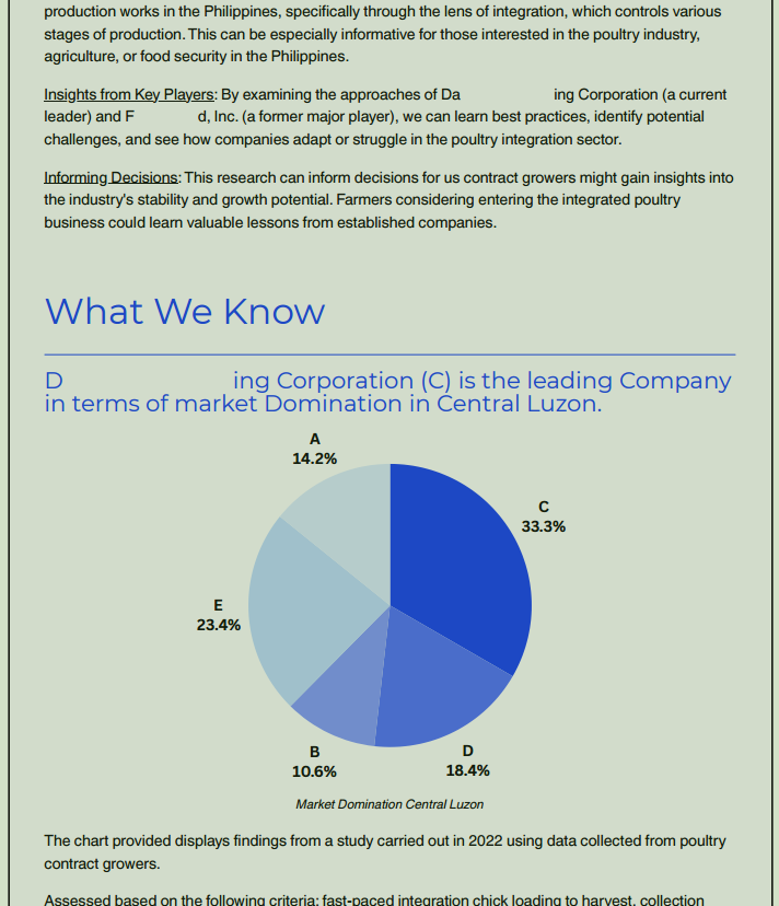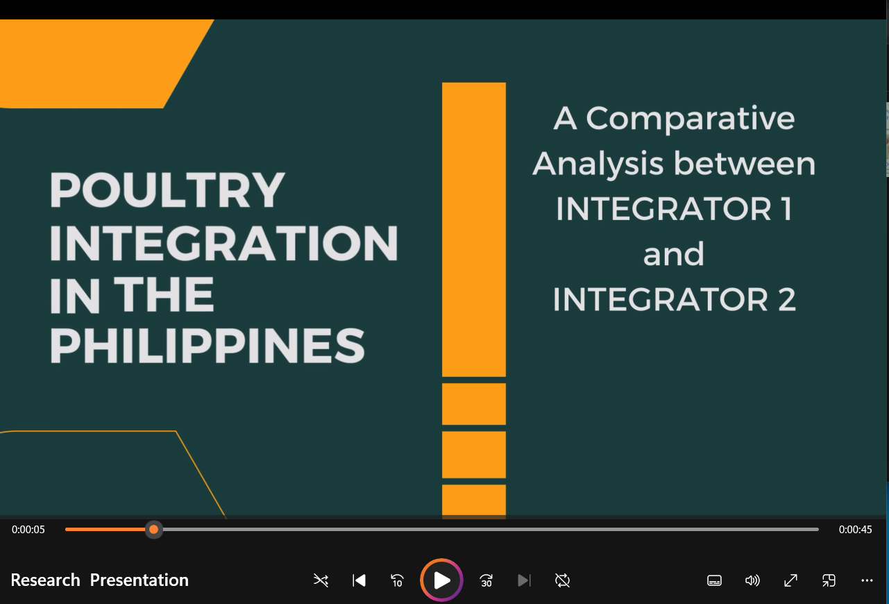 Here is an example of my research report about poultry integration in the Philippines. This was used during a management meeting to renew the contract with the present integrator or pursue a new contract with another major key player in the industry.