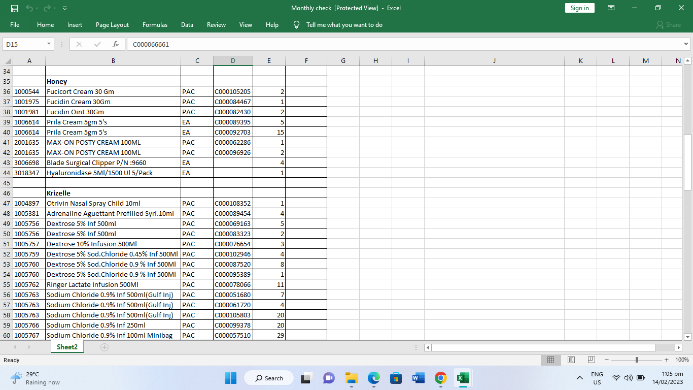 Monthly auditing of stocks in each Department