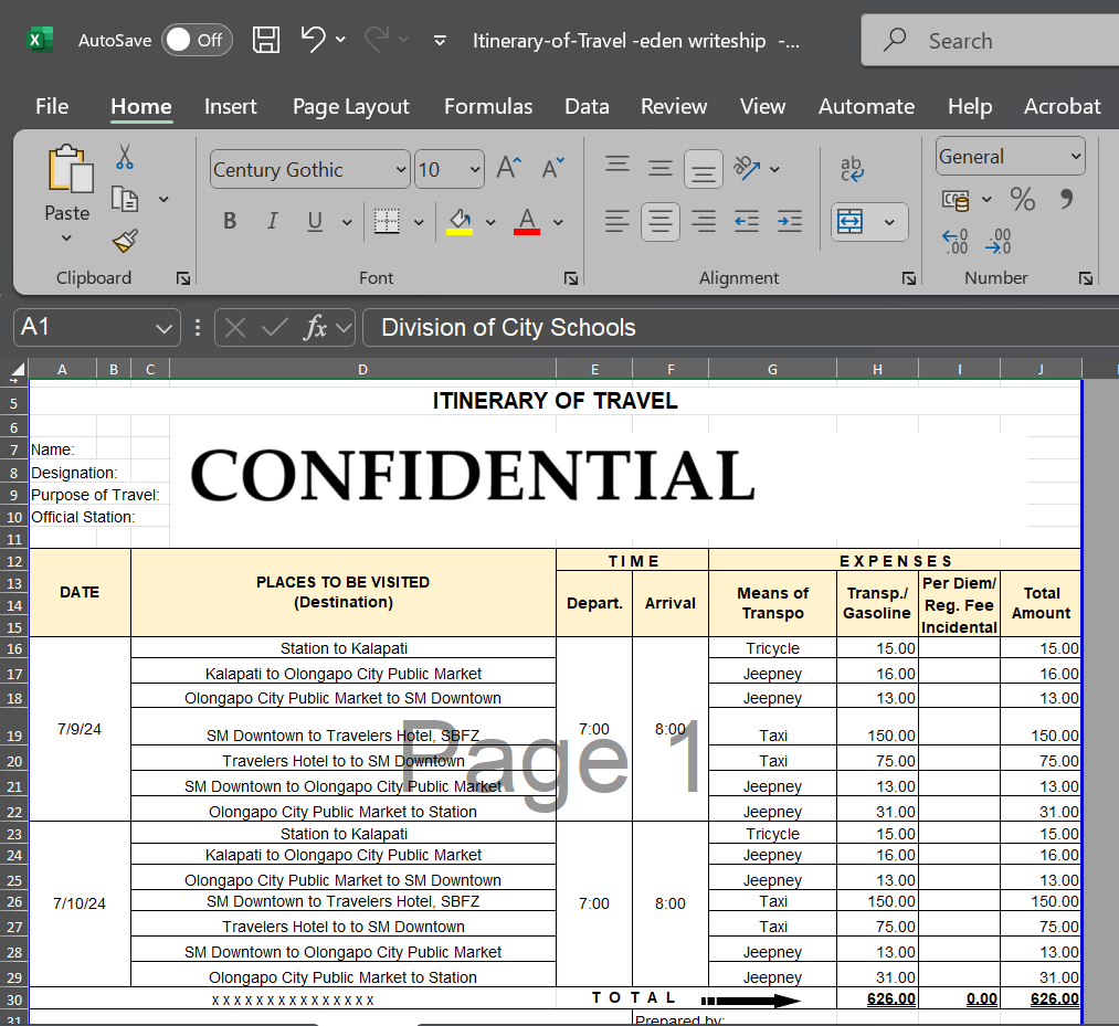 Itinerary of Travel Encoding