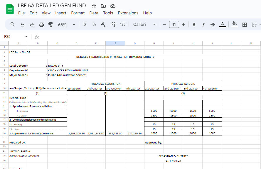 My sample of data entry work in spreadsheets - General Fund Balance Sheet