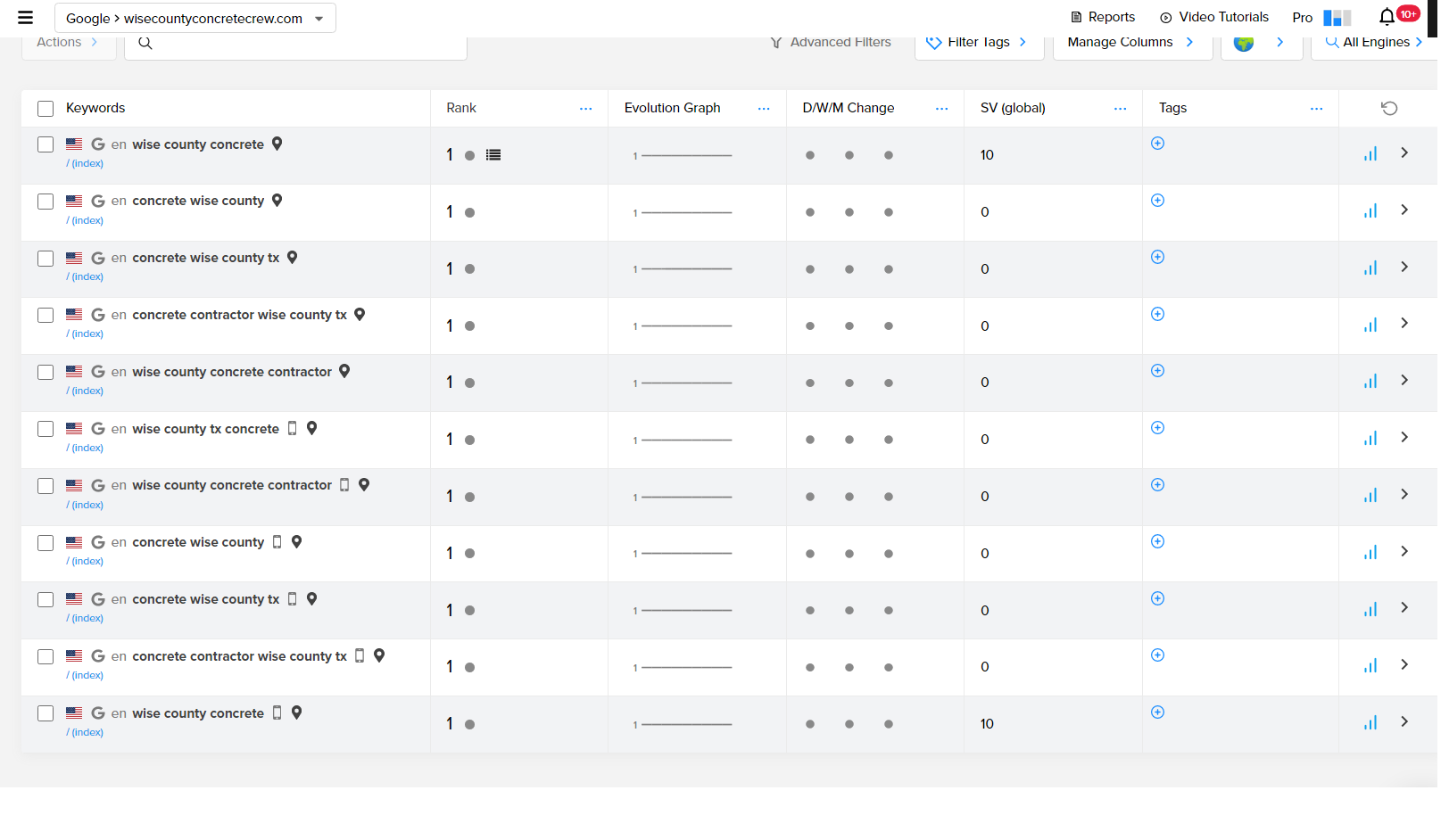 Keywords, Graph, Report