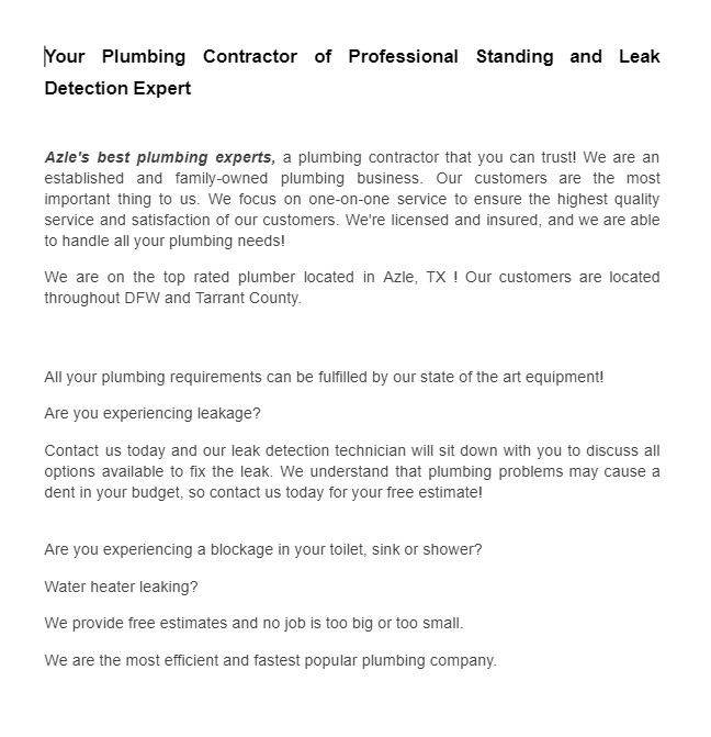 Sample Content for Plumbing Services