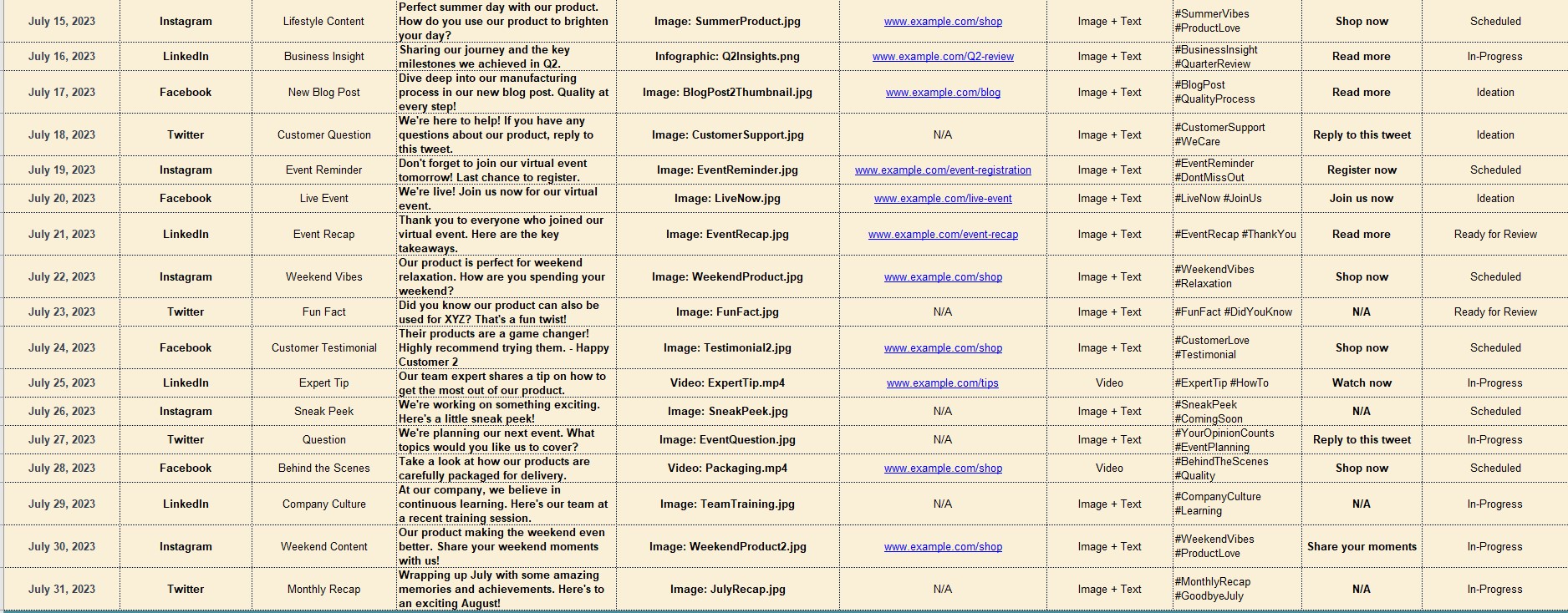 Content Calendar
