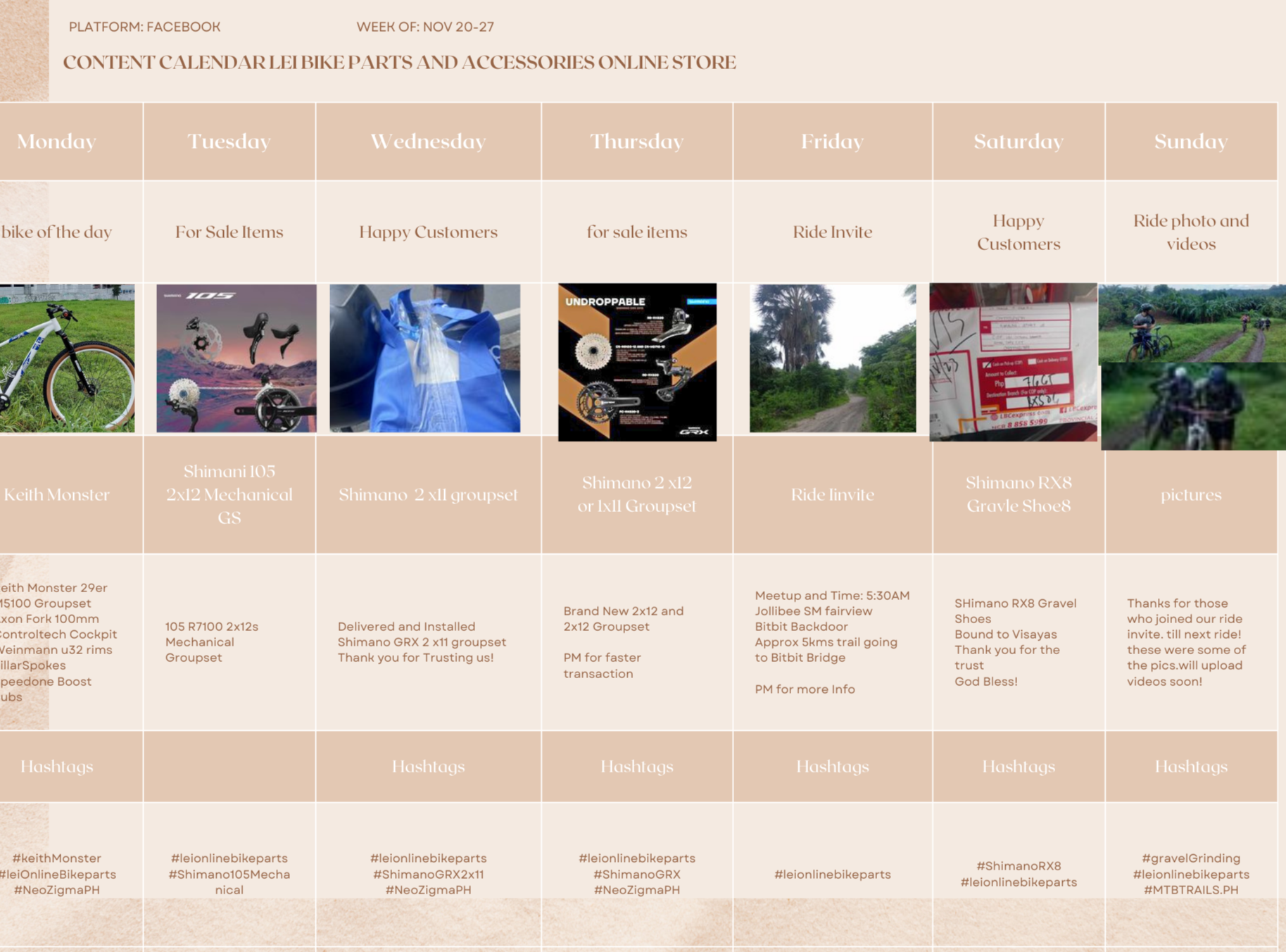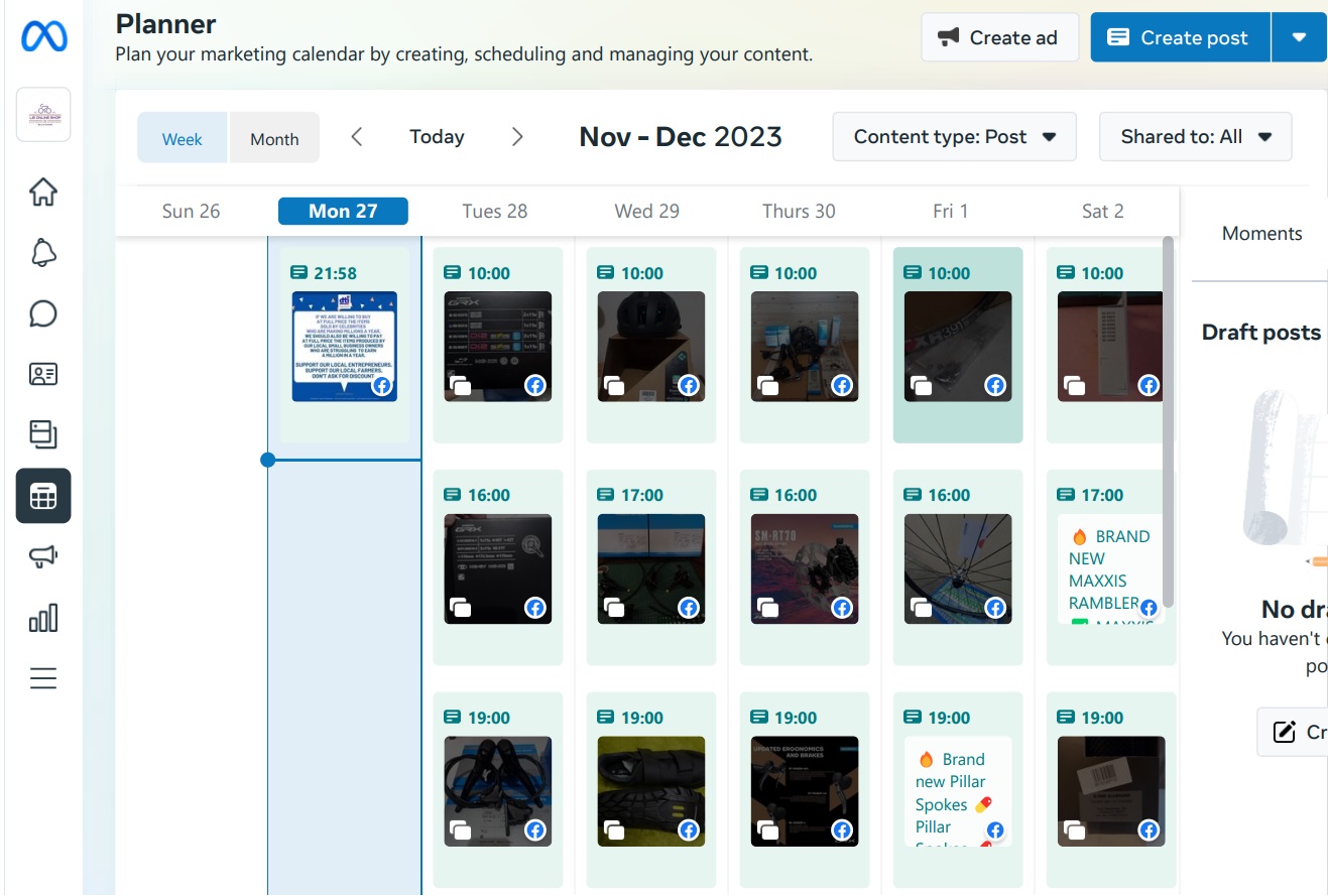 Weekly calendar posting