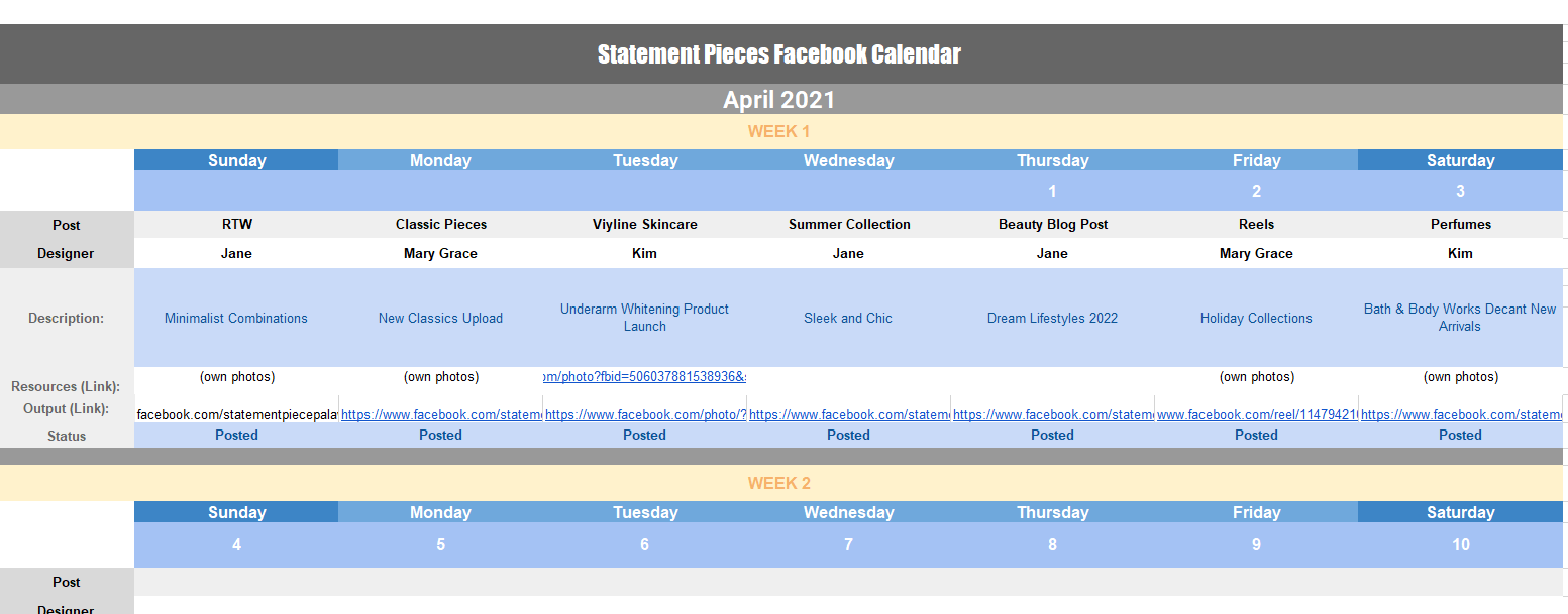 SMM Sample Content Calendar