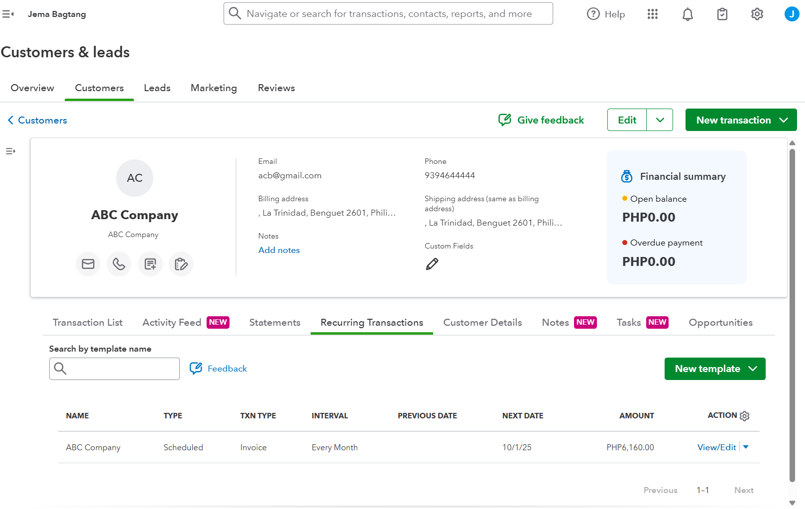 QBO Sample - Add Customer and Create Invoice with Recurring Transaction