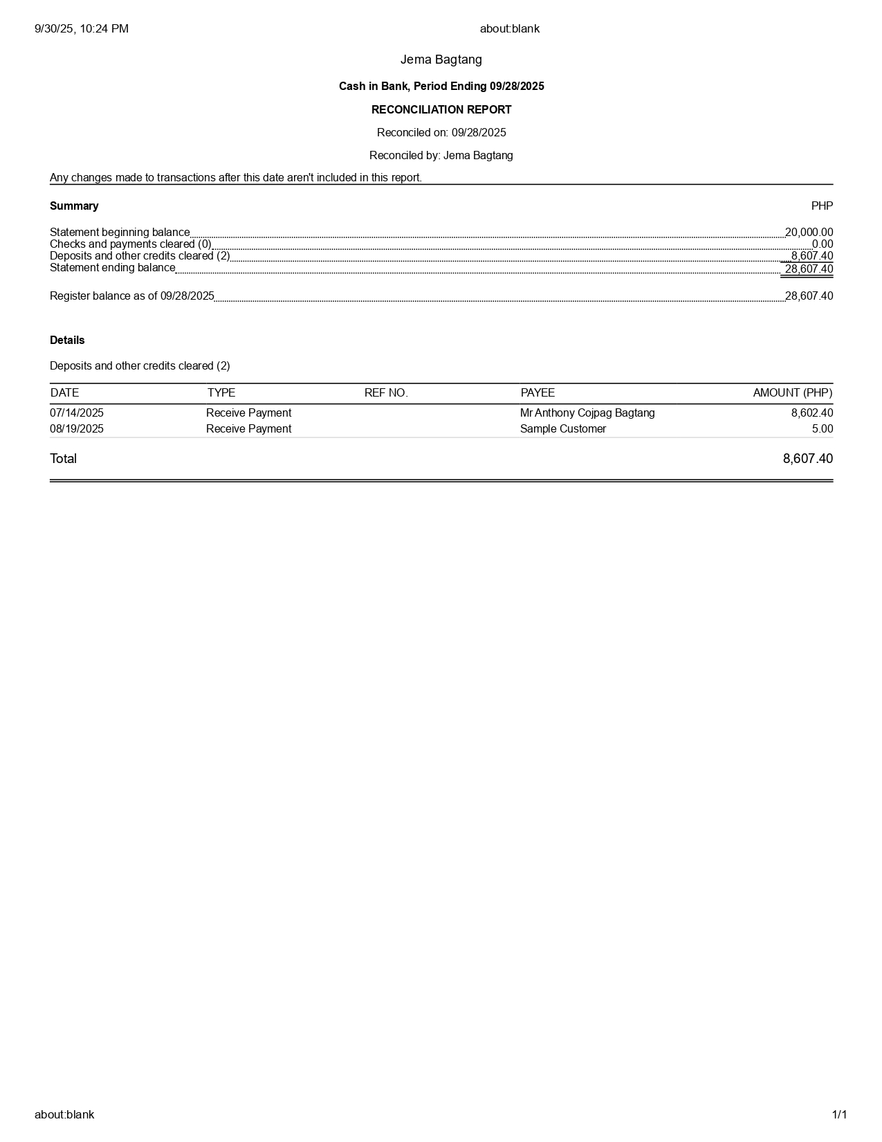 QBO Sample Reconciliation