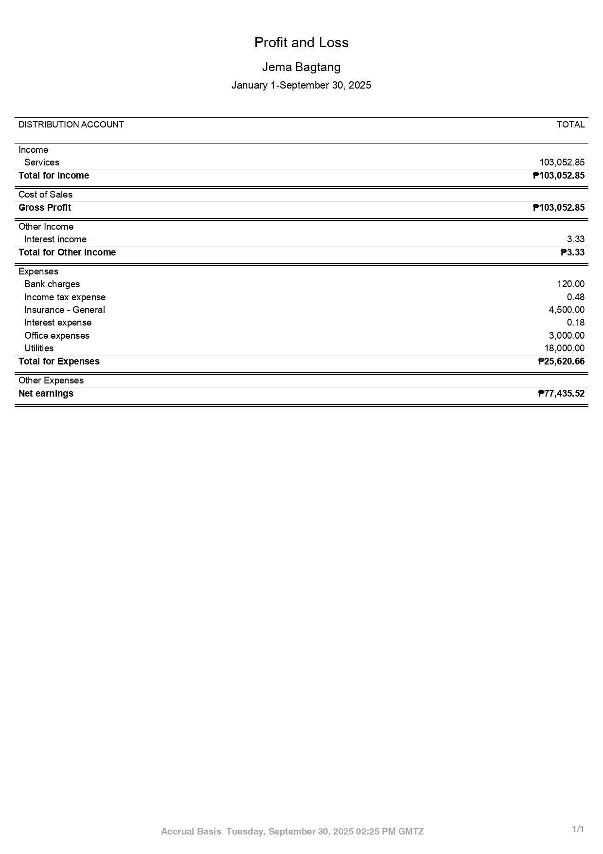 QBO Sample Profit and Loss Report