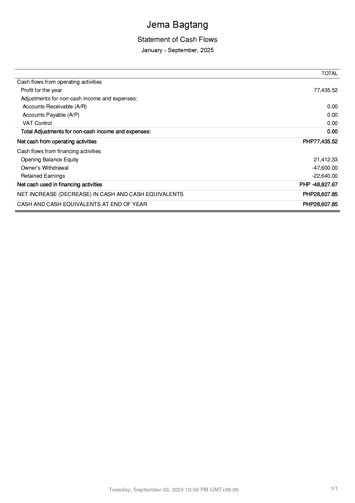 QBO Sample Statement of Cash Flows