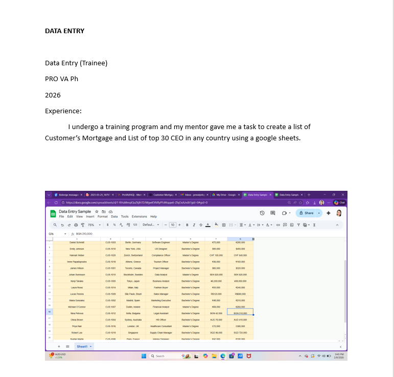 I am a detail-oriented and organized individual seeking a Data Entry position where I can apply my typing skills and accuracy in handling information. I am comfortable using spreadsheets, online systems, and basic office tools to input, update, and manage data efficiently. As a beginner, I am eager to learn, follow instructions carefully, and ensure that all tasks are completed accurately and on time.