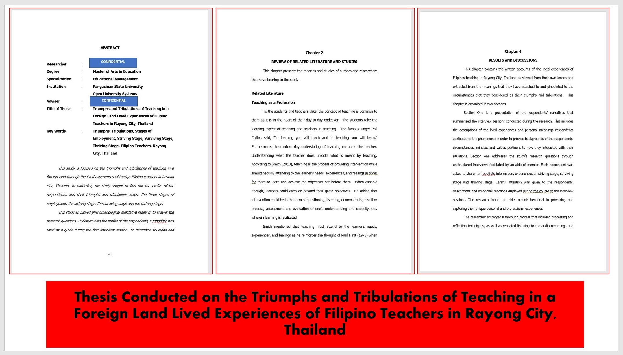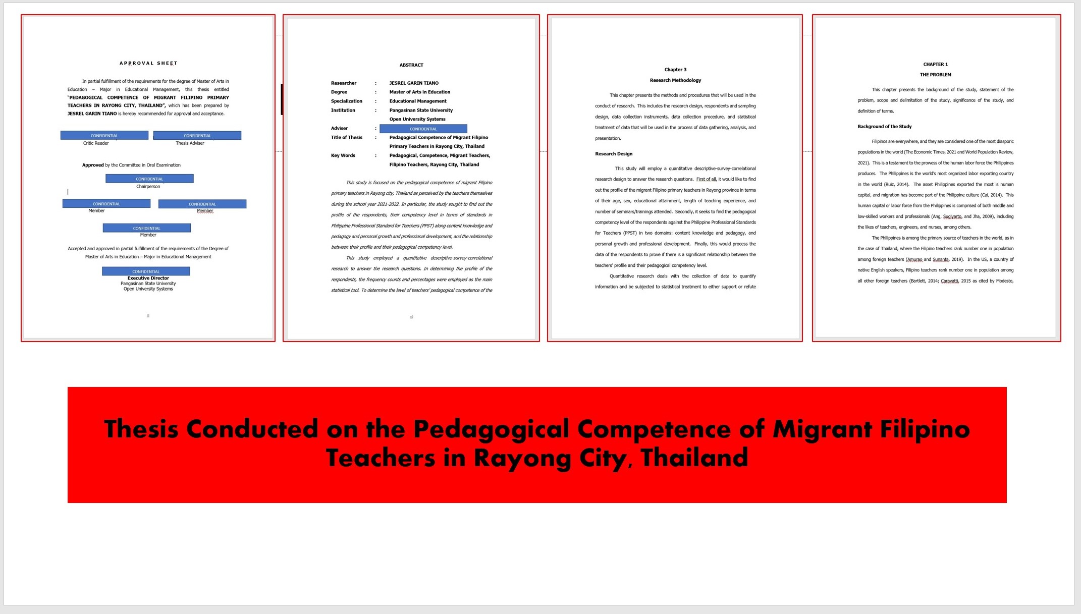 Screenshots of the thesis conducted about the Pedagogical Competence of Migrant Filipino Teachers in Rayong City, Thailand