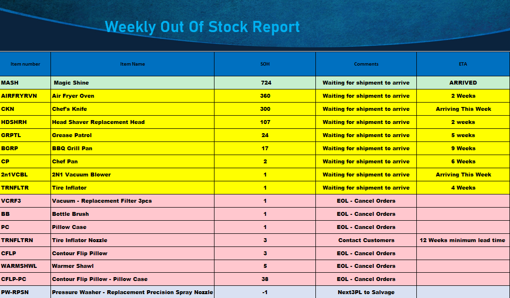 Weekly Out Of Stock Report
