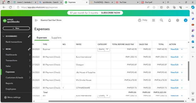 Quickbooks Sample Entry