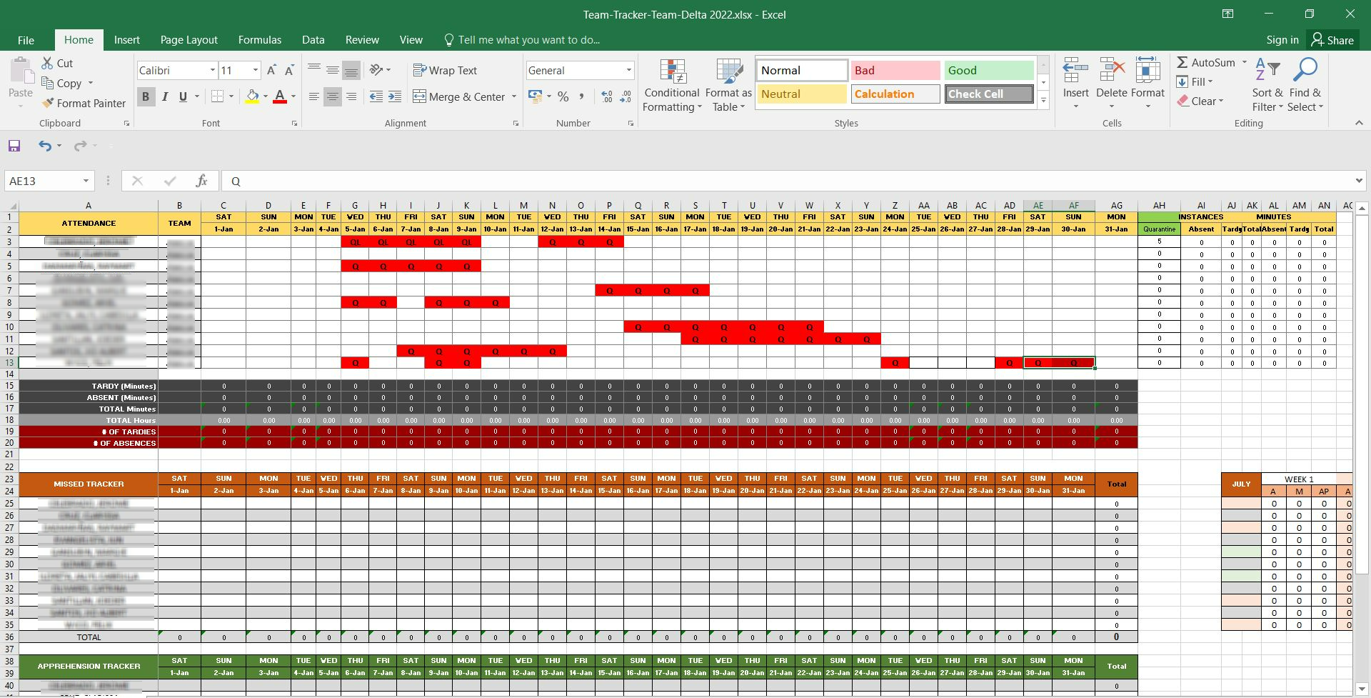 I created schedule and Inputted KPI scores for my previous team. (See google drive link below)
