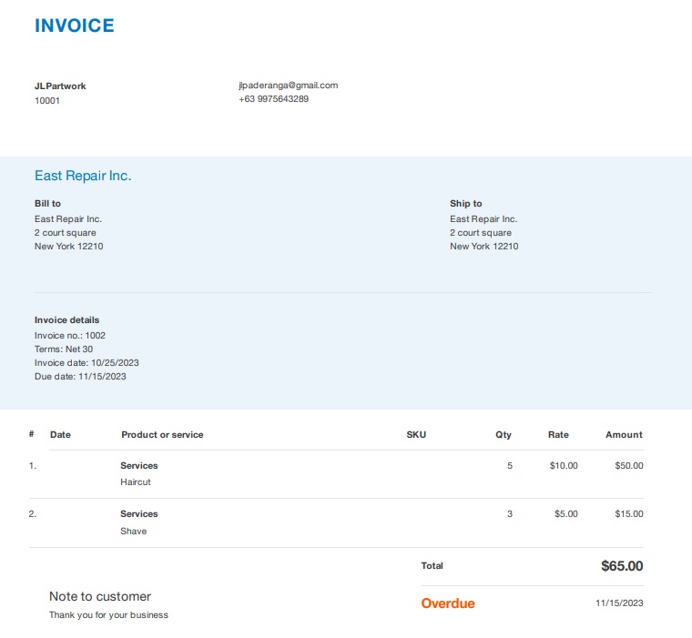 Preparing invoices