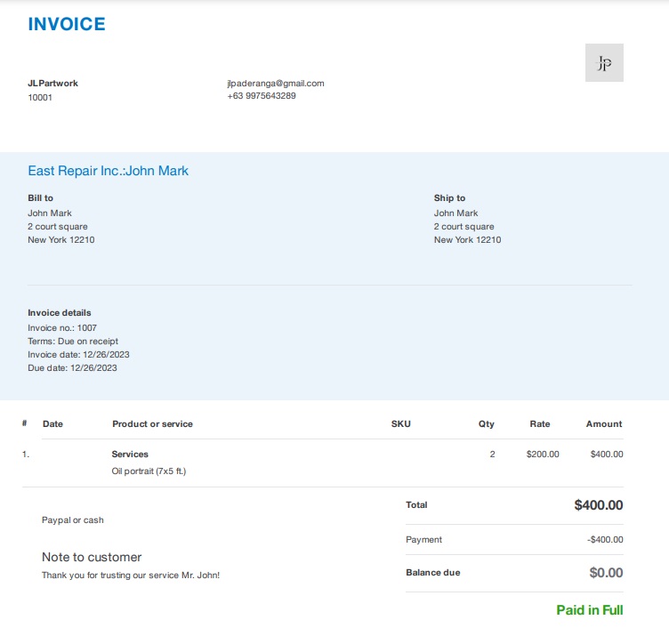 Payment of invoice