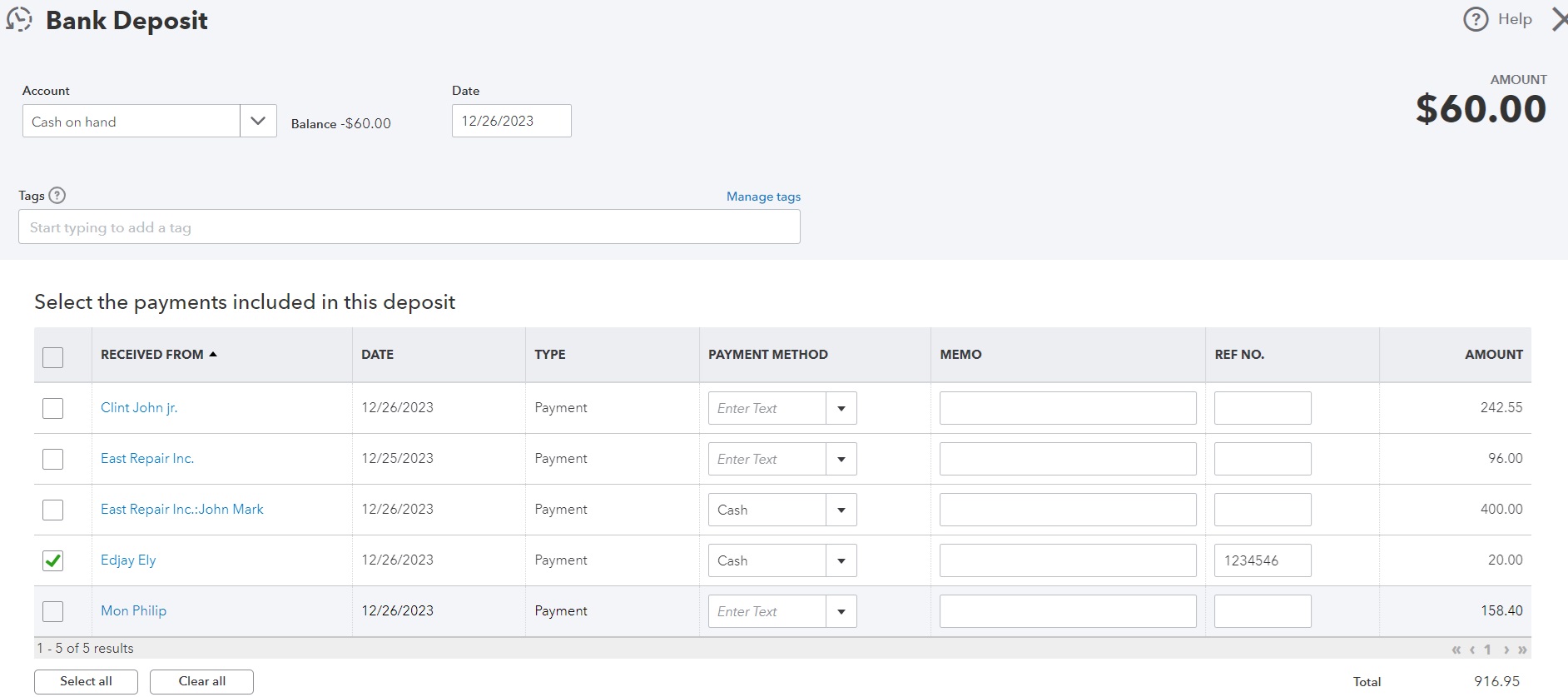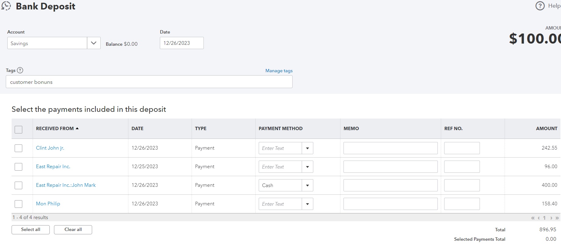 preparing deposit