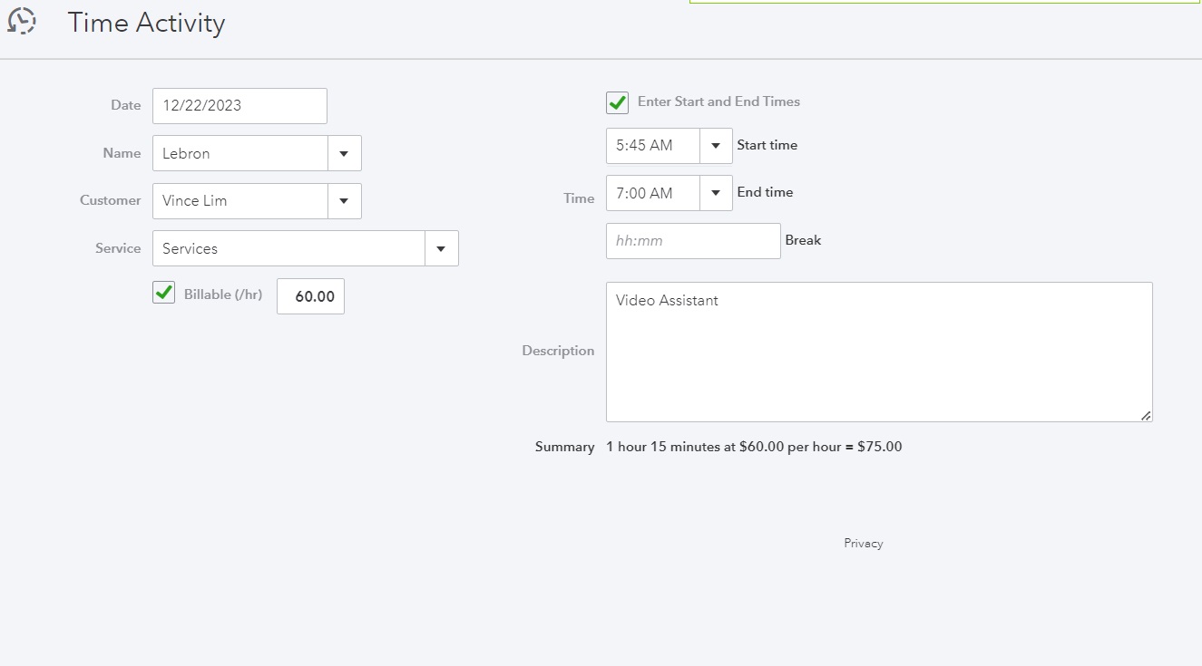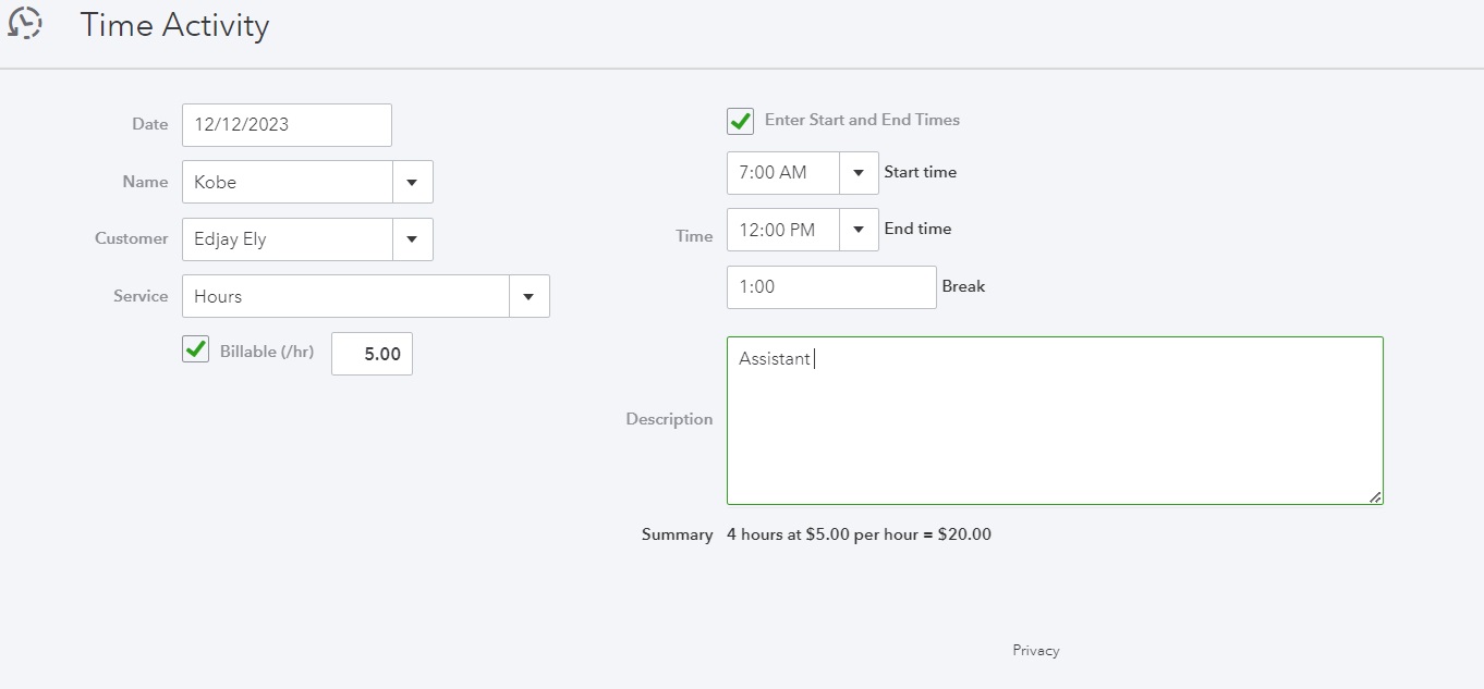Single time activity