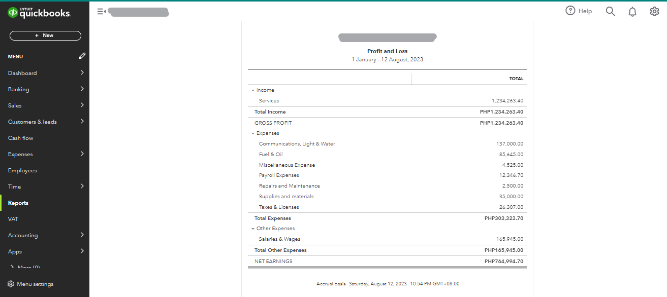 QuickBooks Online Report