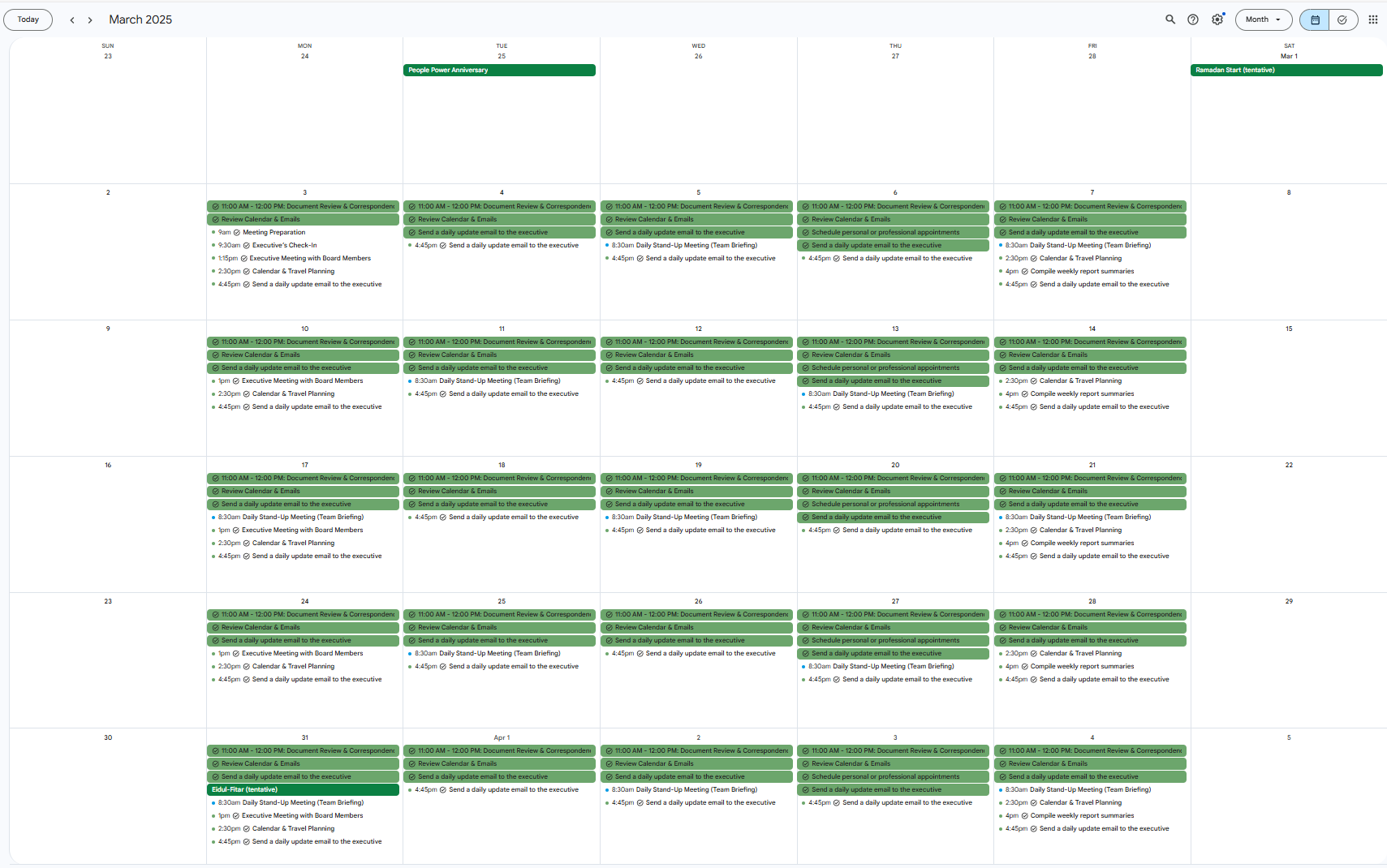 Calendar Activities as Executive Assistant