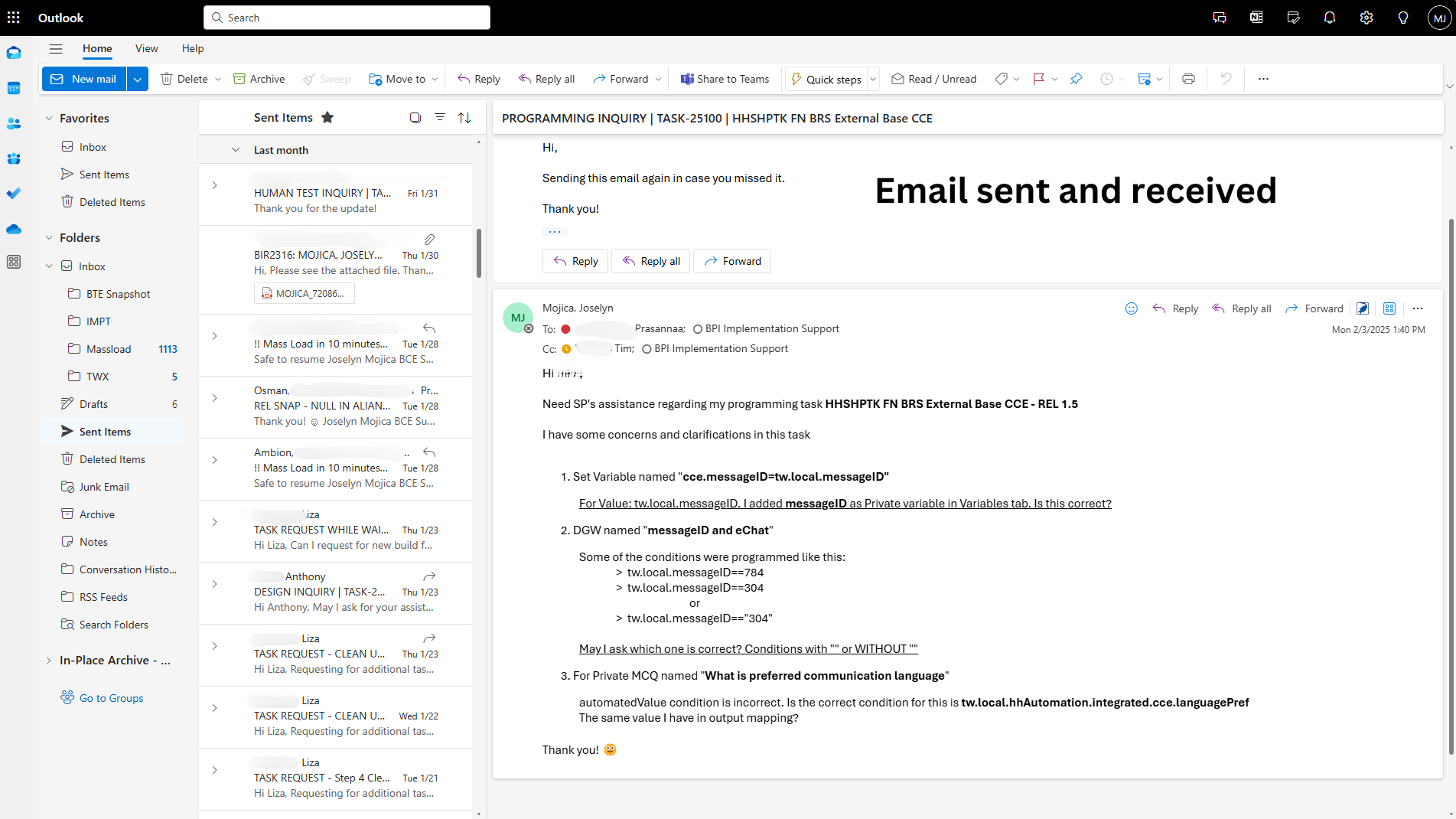 Emails sent and received