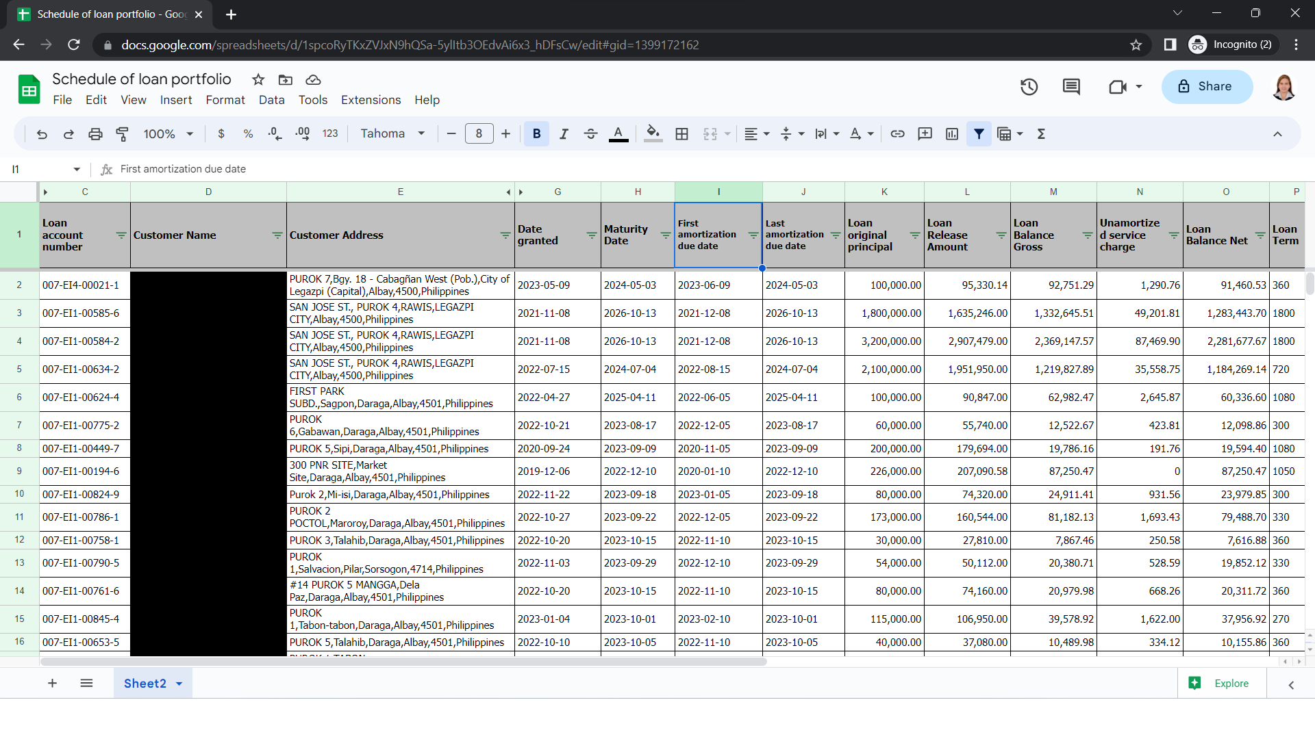 Schedule of loan portfolio