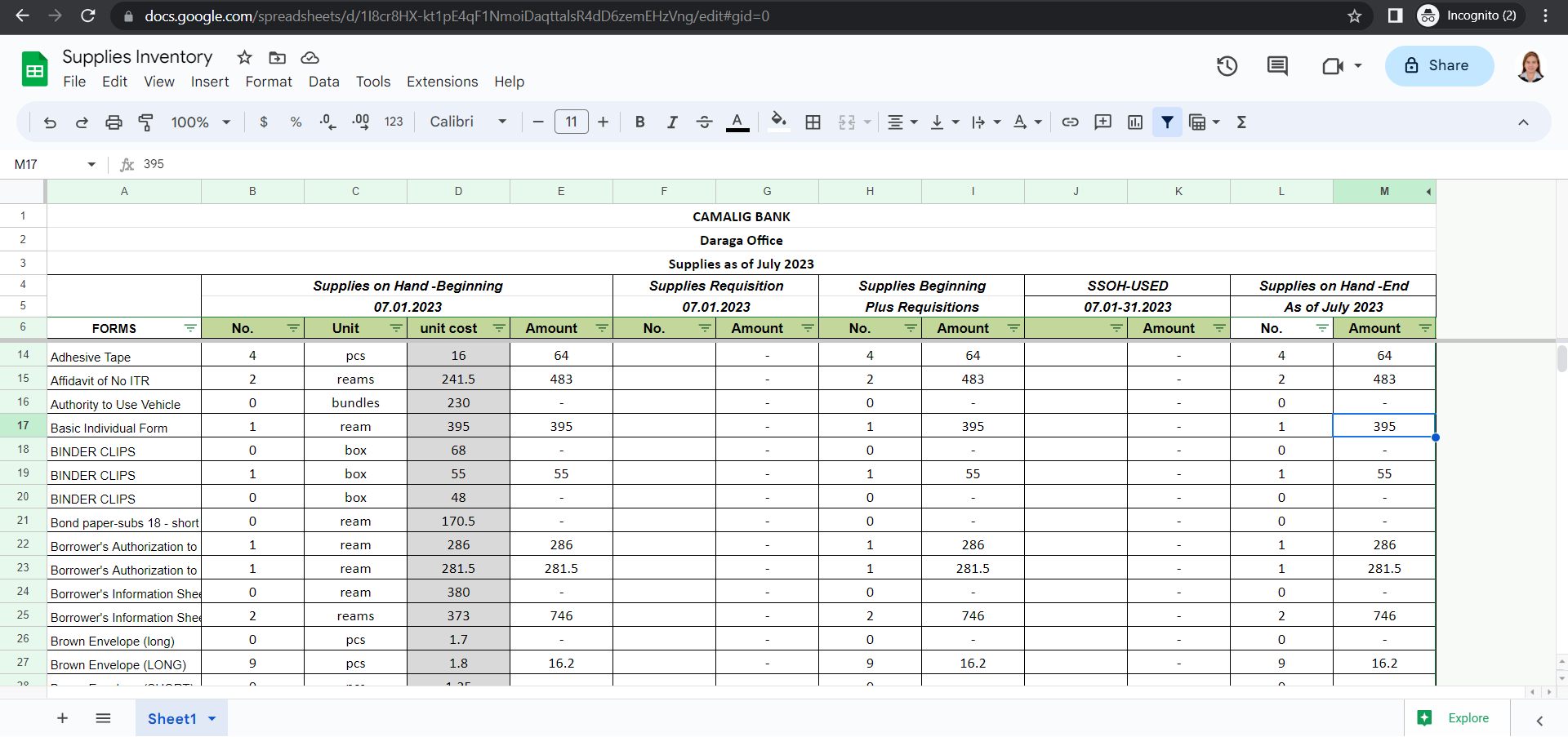 Supplies inventory