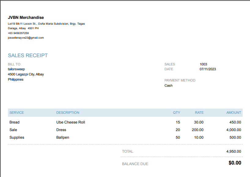 Sales Receipt