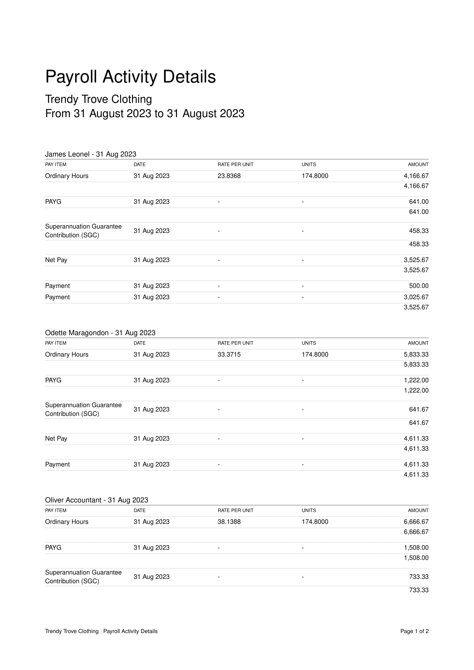 Payroll Activity Details