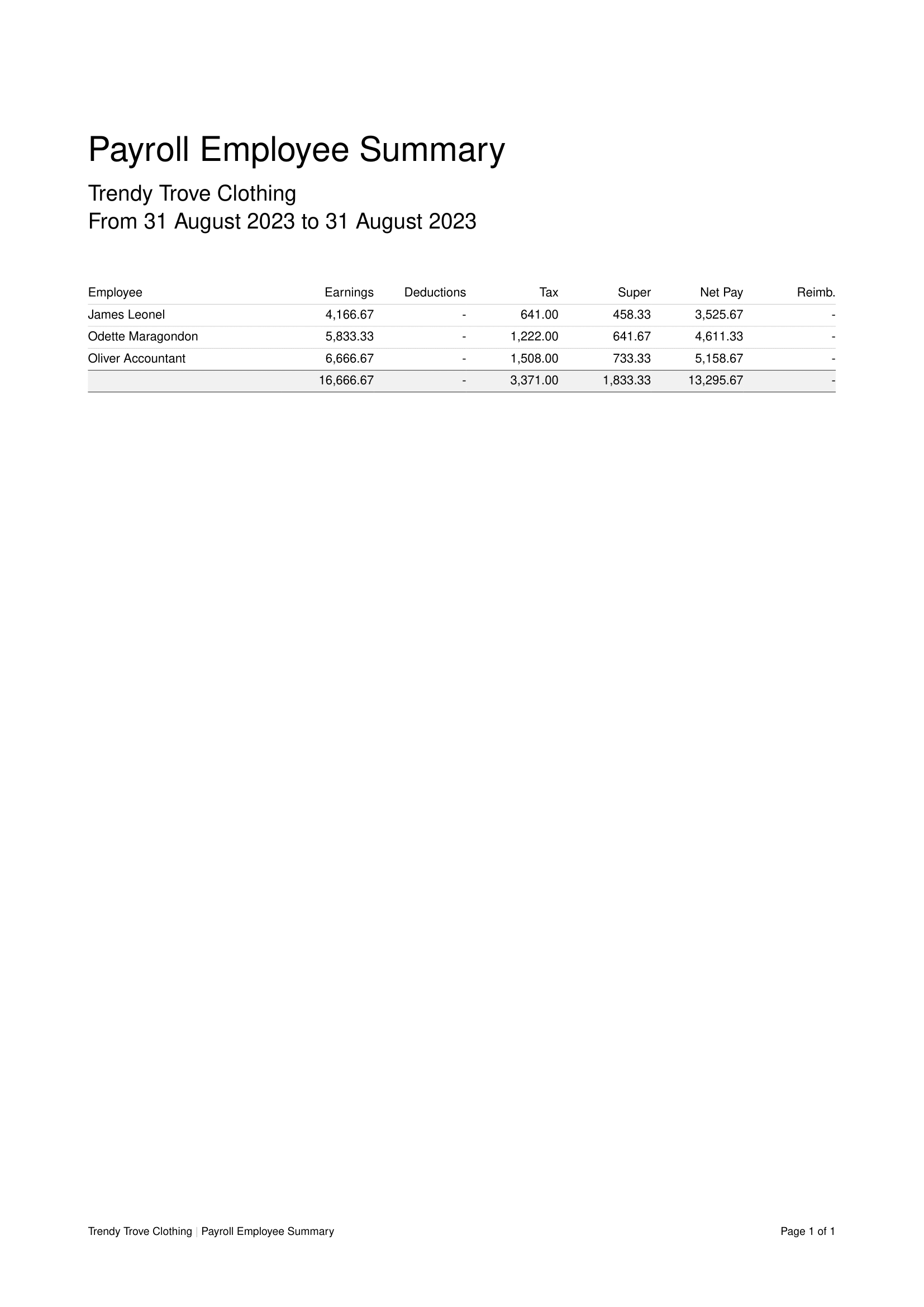 Payroll Employee Summary