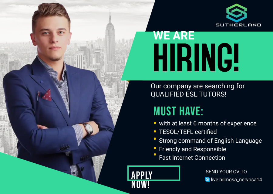 Poster for a hiring ESL Company