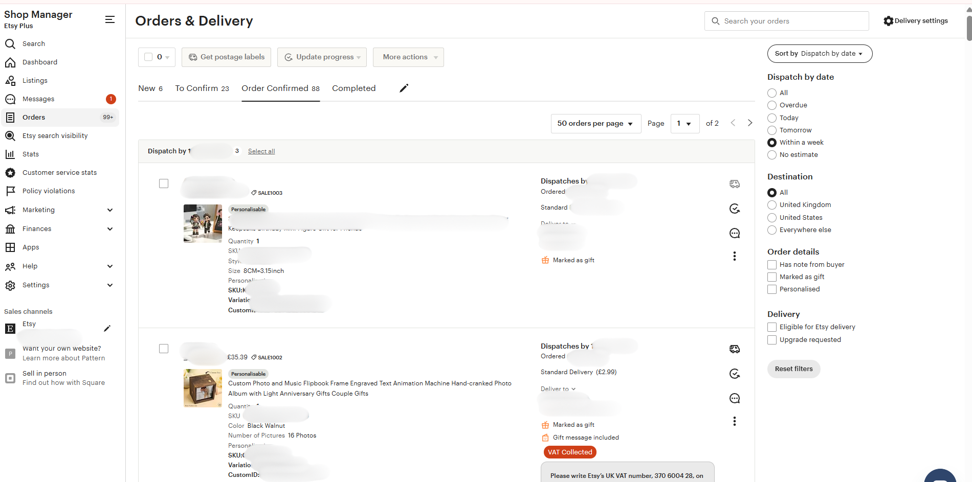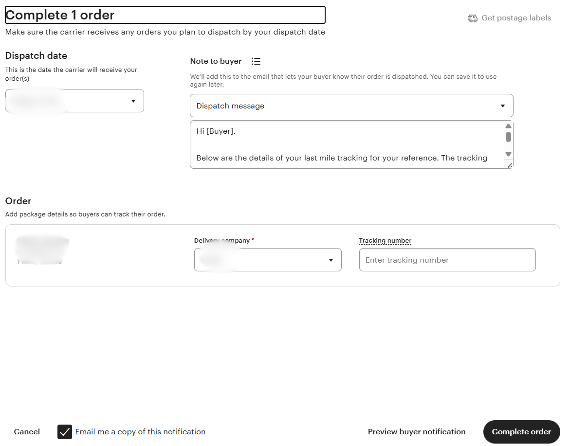Etsy dispatch (order fulfillment) process