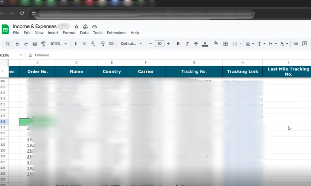 Spreadsheet (order details)