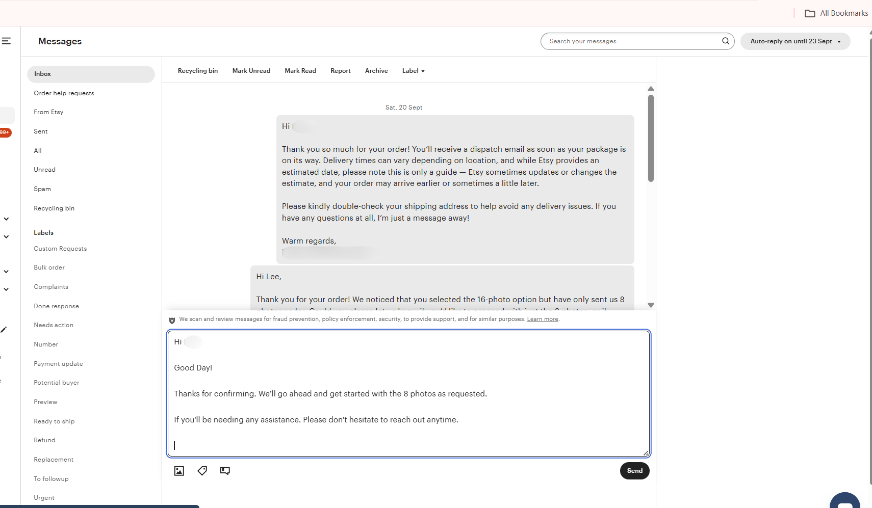 Etsy messaging (assisting buyer's concern)