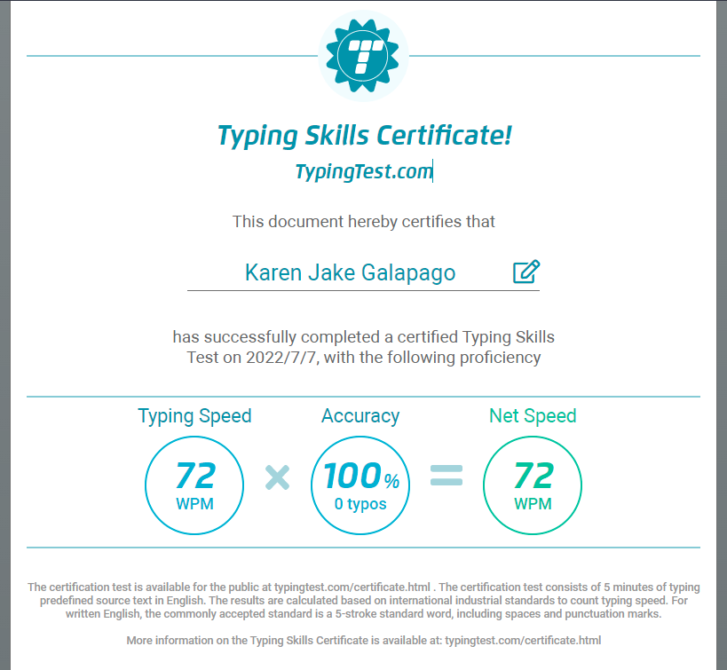 Typing Skills Certificate