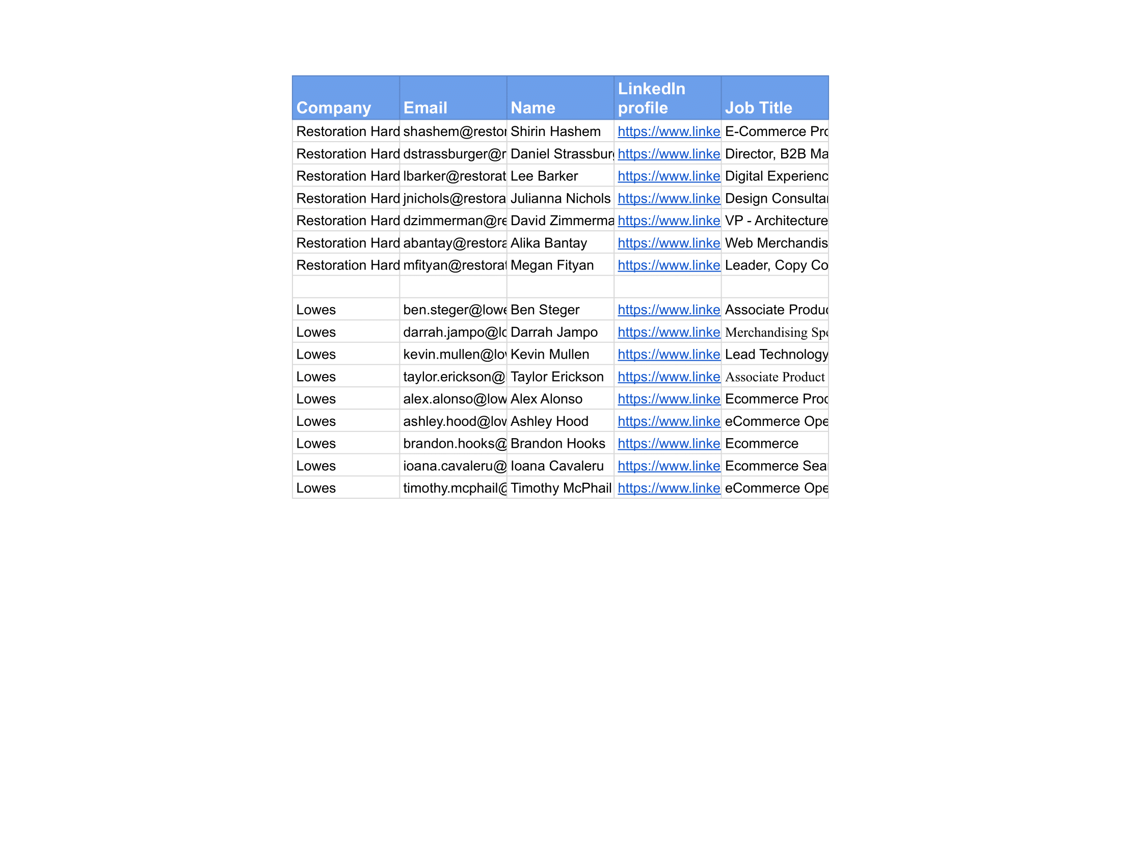 Sample List Contact of Ecommerce and IT personnel. Company provided by the client and we need to collect data of all the ecommerce and IT personnel on the company.