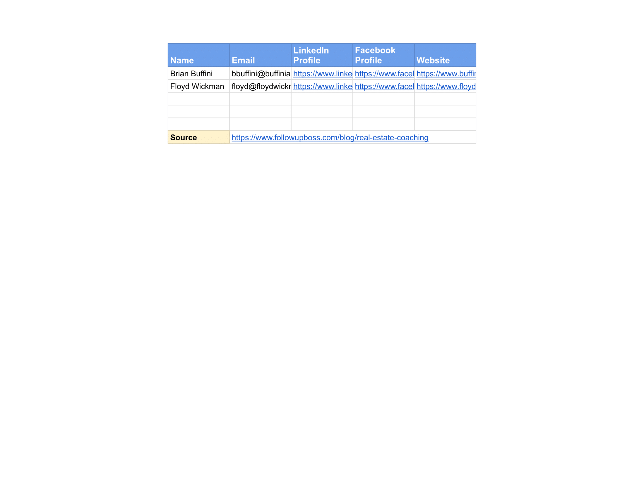 Sample Contact List