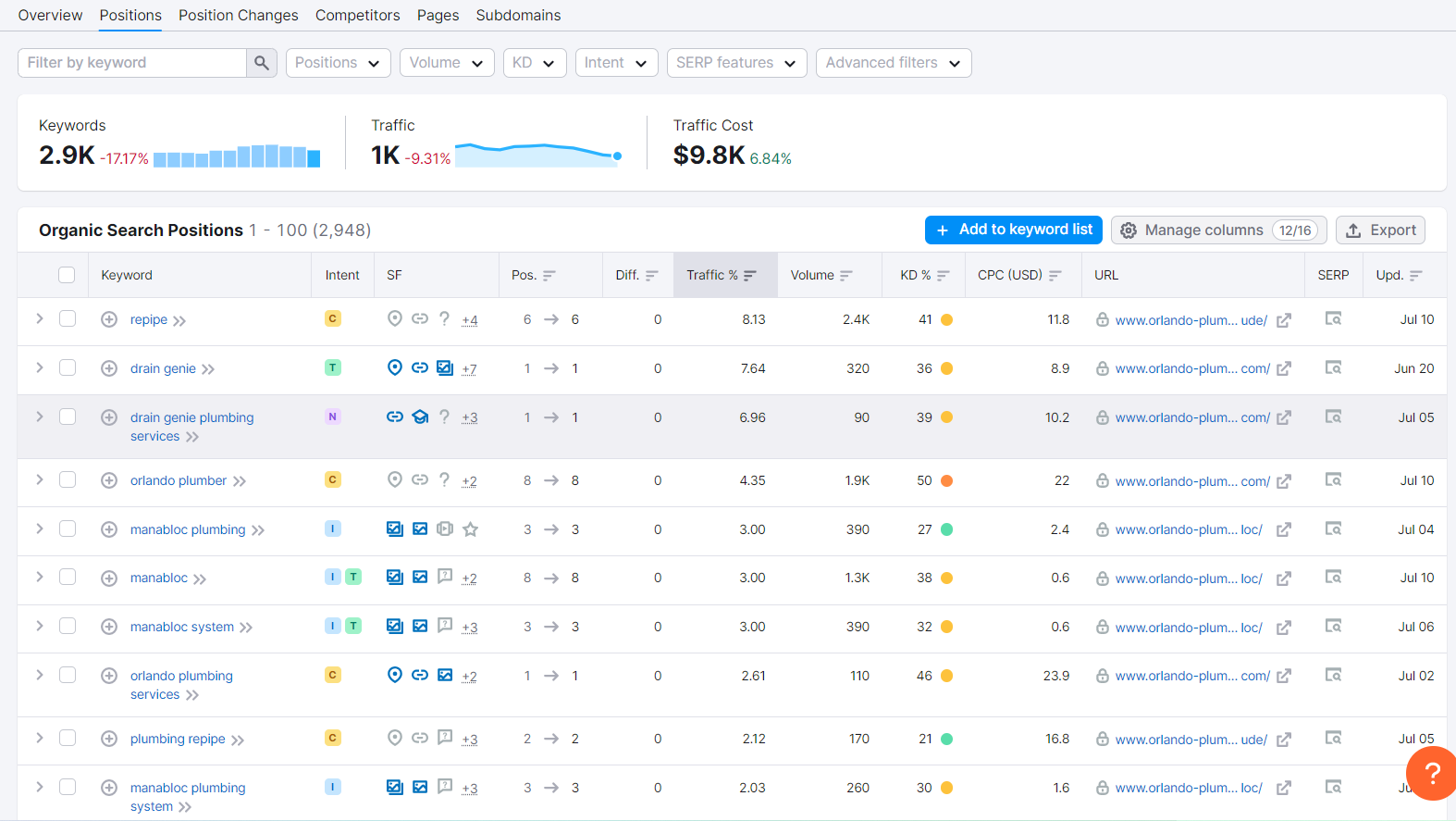 Diversified Plumbing Services of SW Florida SemRush Resut